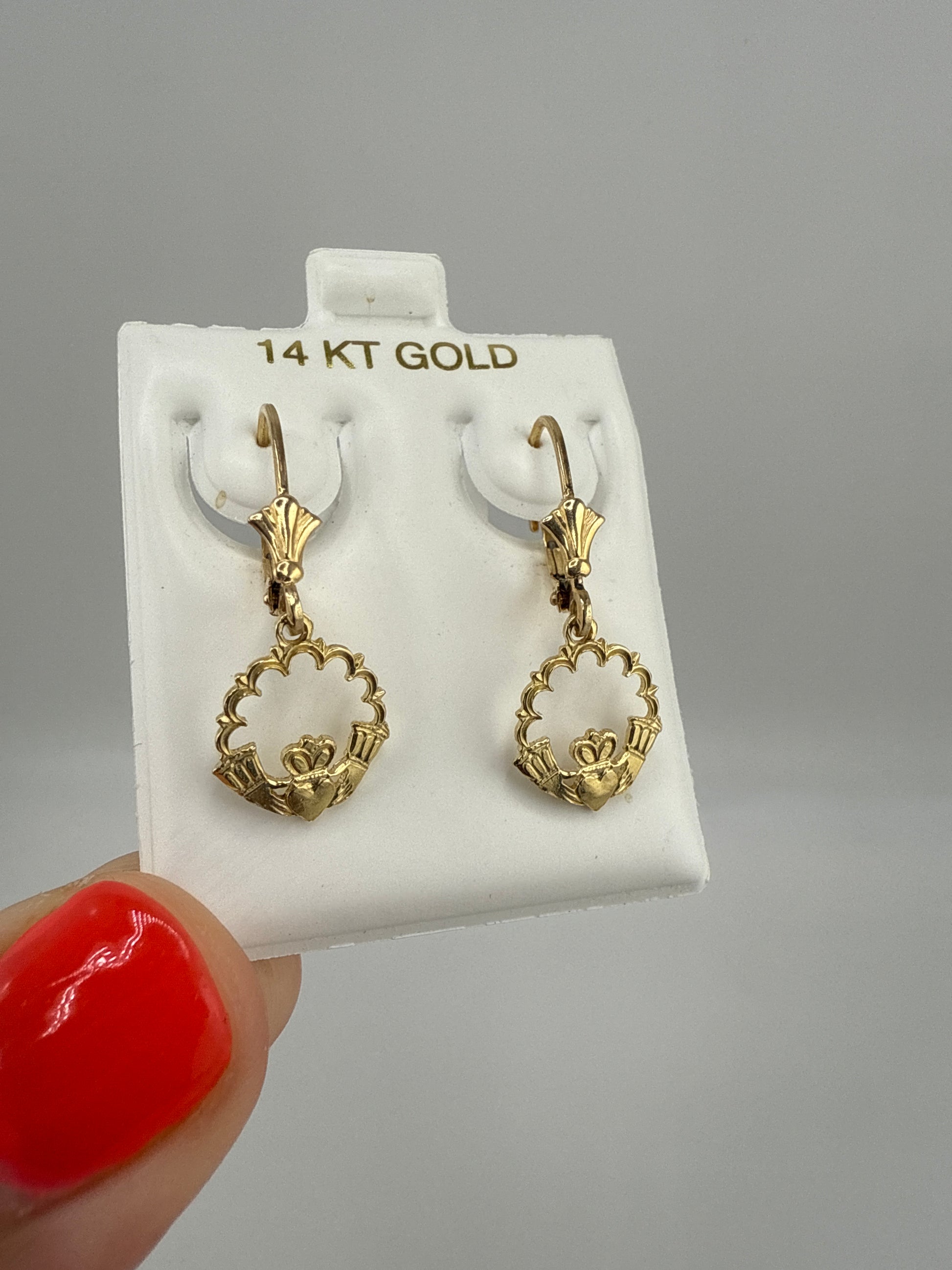 Indulge in luxury and culture with our 14k gold claddagh Huggie hoops. These hoops, made from the highest quality gold, feature the iconic Irish claddagh symbol. Showcasing love, loyalty, and friendship, these hoops make a heartfelt and stylish addition to your jewelry collection. Perfect for any occasion, these hoops are sure to make a meaningful and lasting impression.