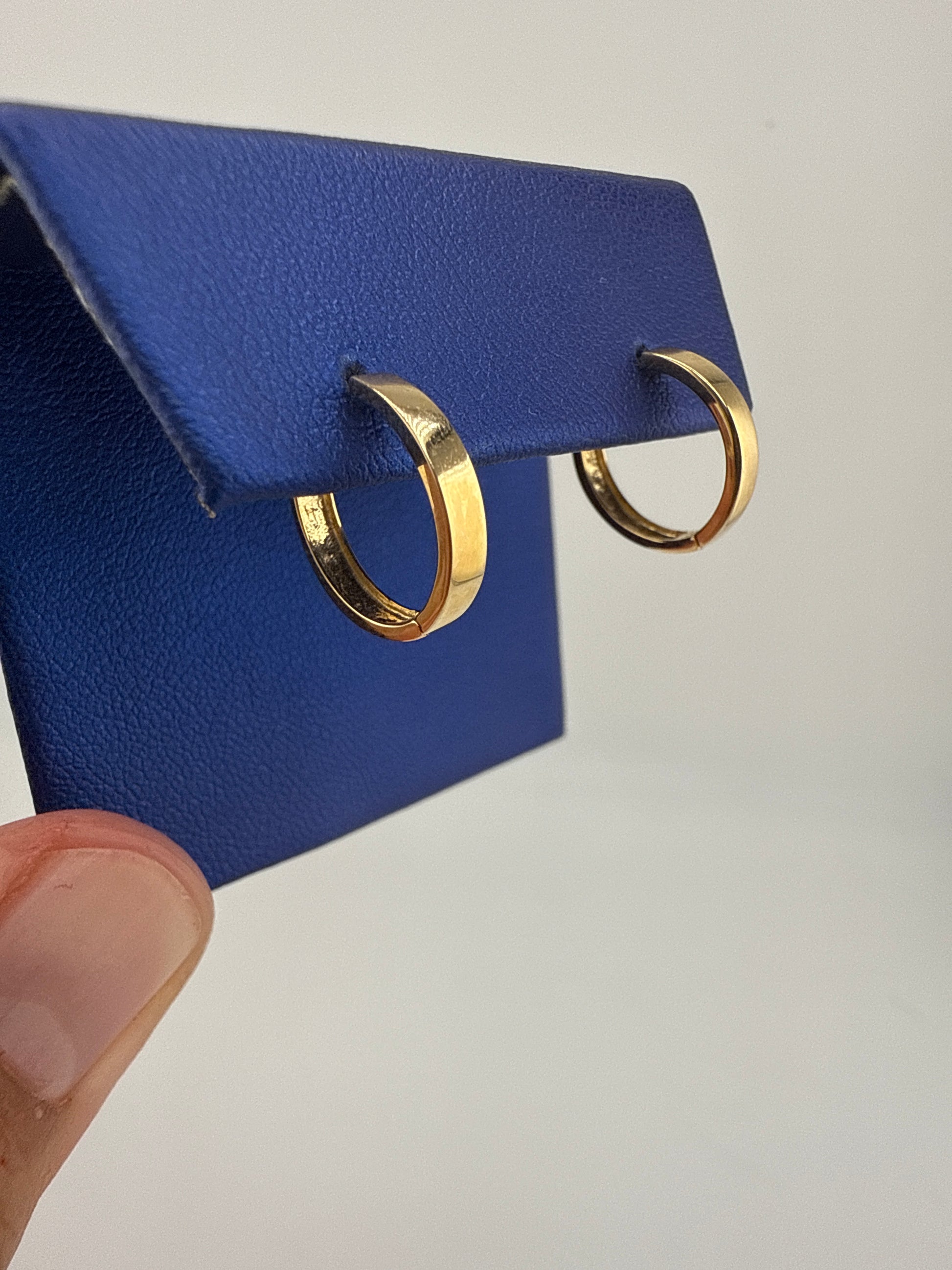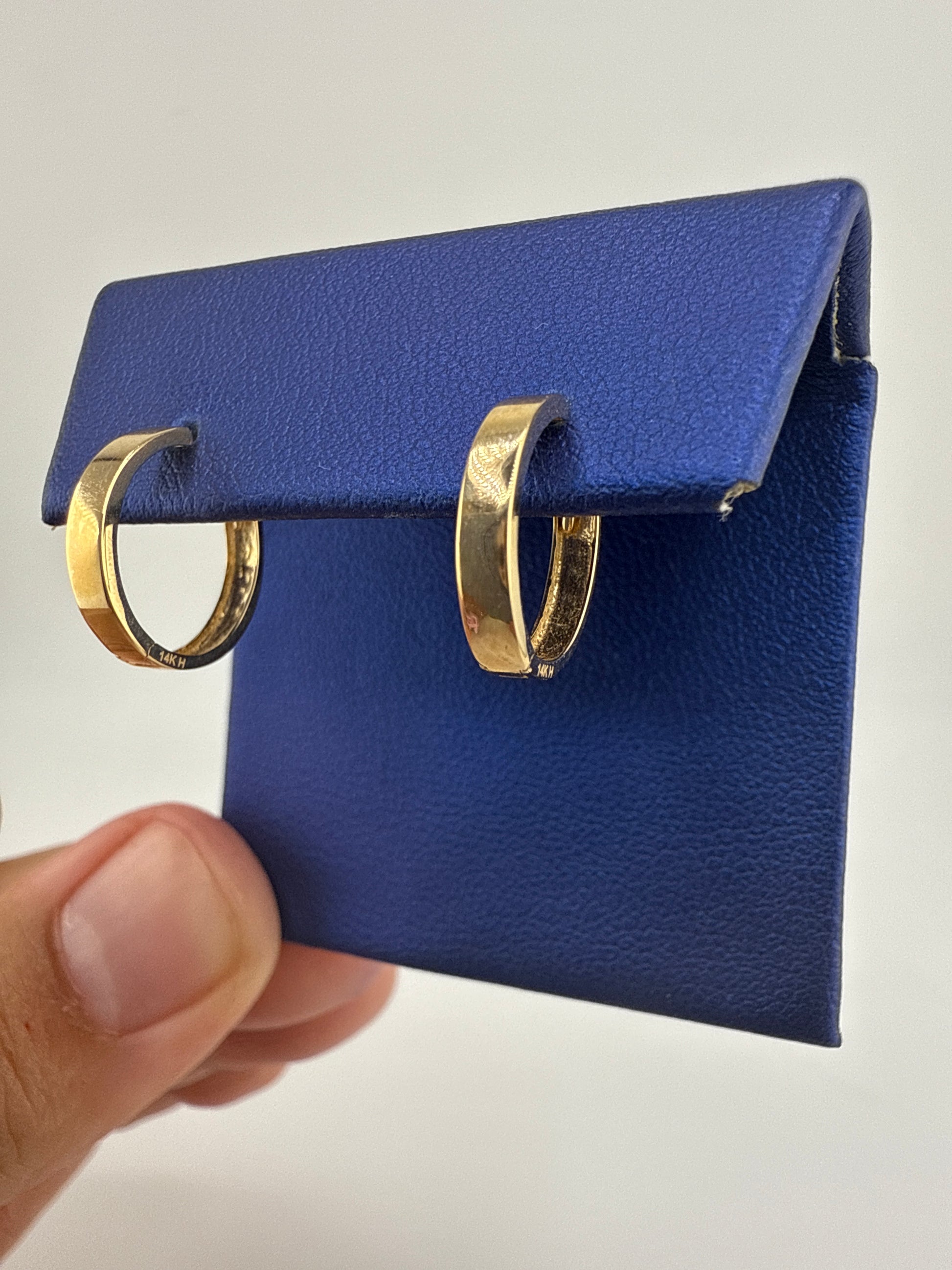 Elevate your everyday look with our stunning 14k gold huggie earrings. Featuring a simple design, these earrings exude elegance and versatility. Made with high quality materials, they are sure to be a durable and timeless addition to your jewelry collection. Upgrade your style with these must-have huggies!