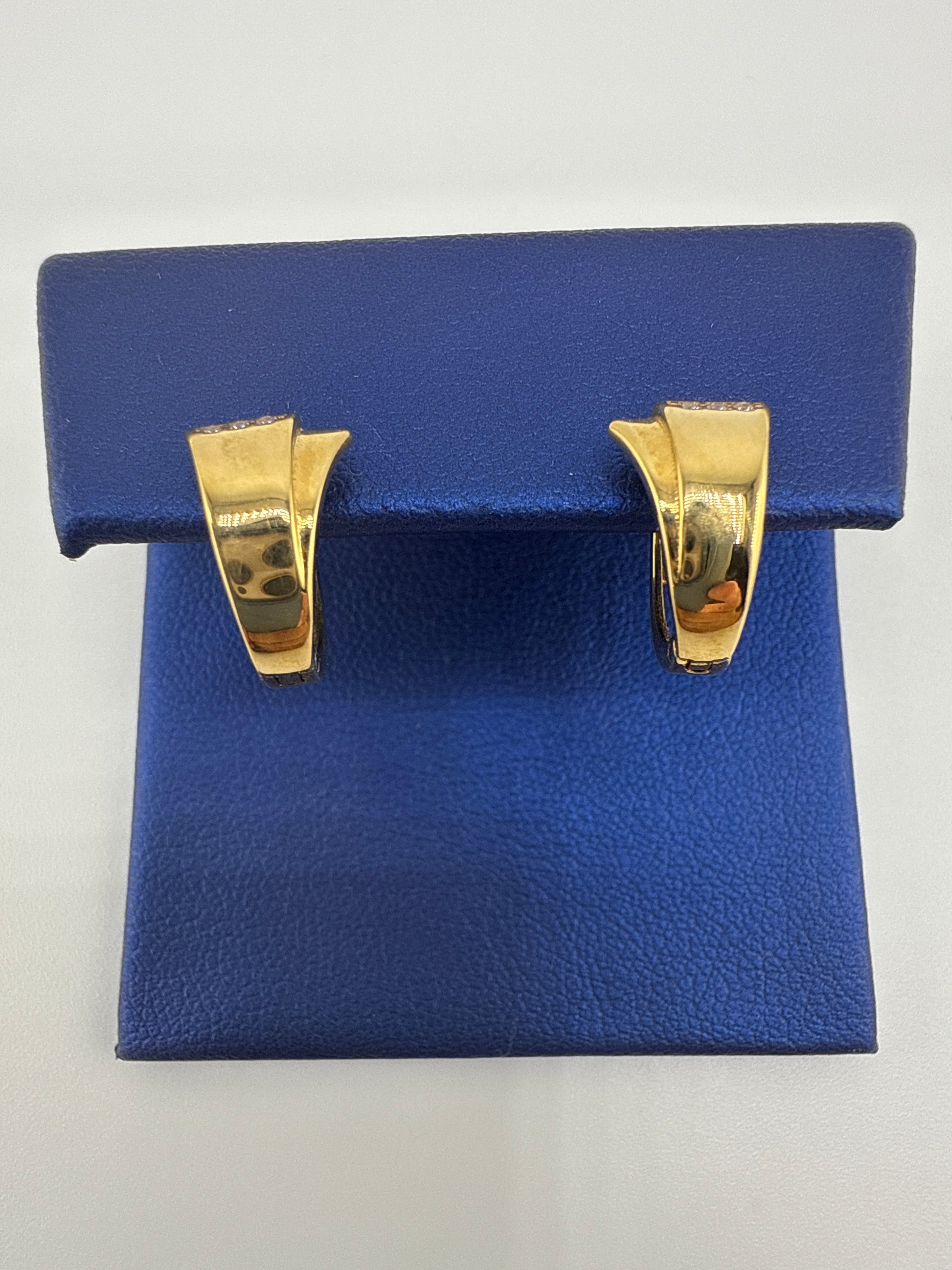 Elevate your style with our 14k gold huggie earrings! These elegant earrings feature a fancy design adorned with sparkling zirconia stones. Made with high-quality materials, they are not only beautiful but also durable. Add a touch of luxury to any outfit with these stunning earrings.
