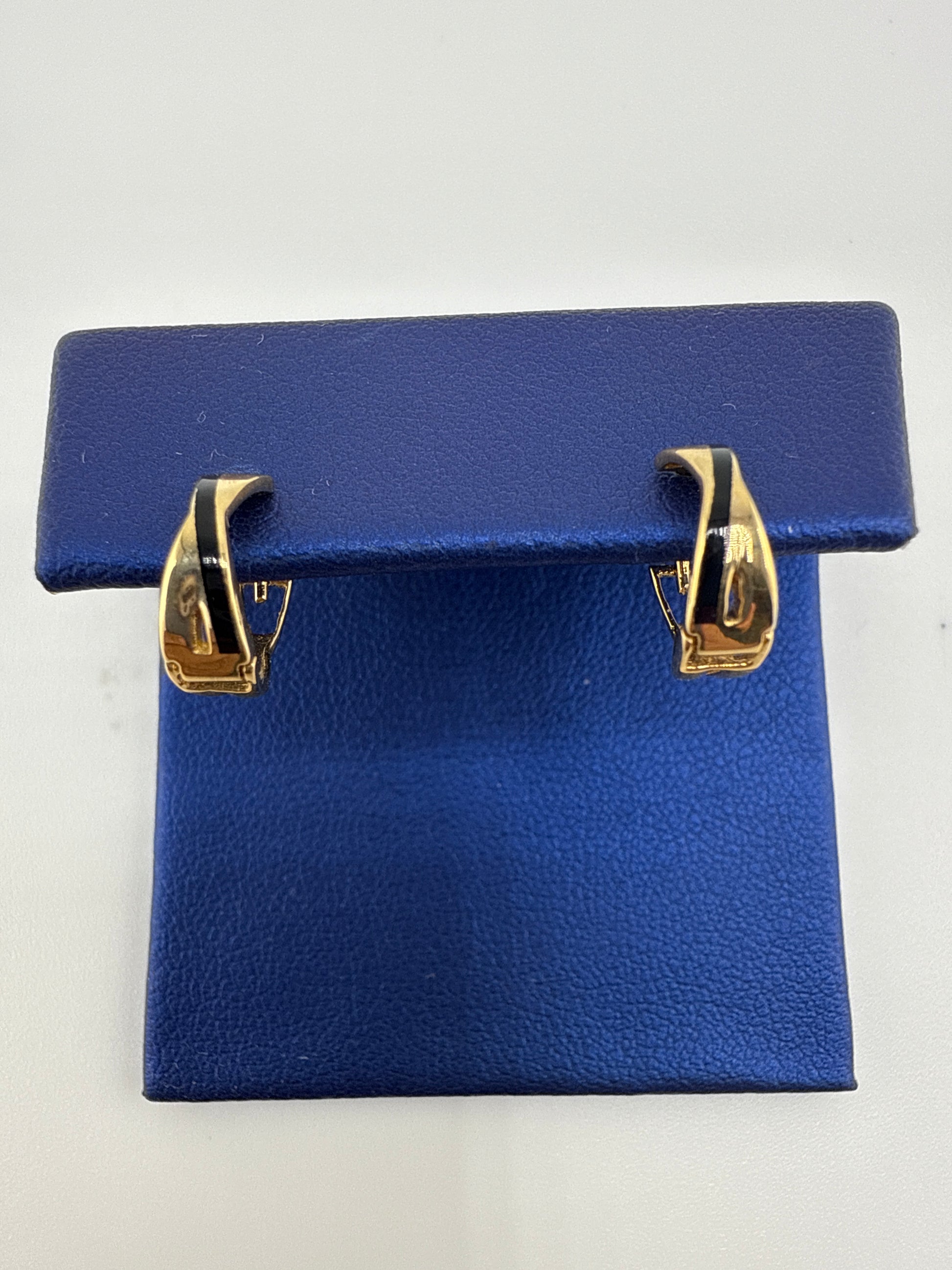 14k gold huggie earrings | black detail
