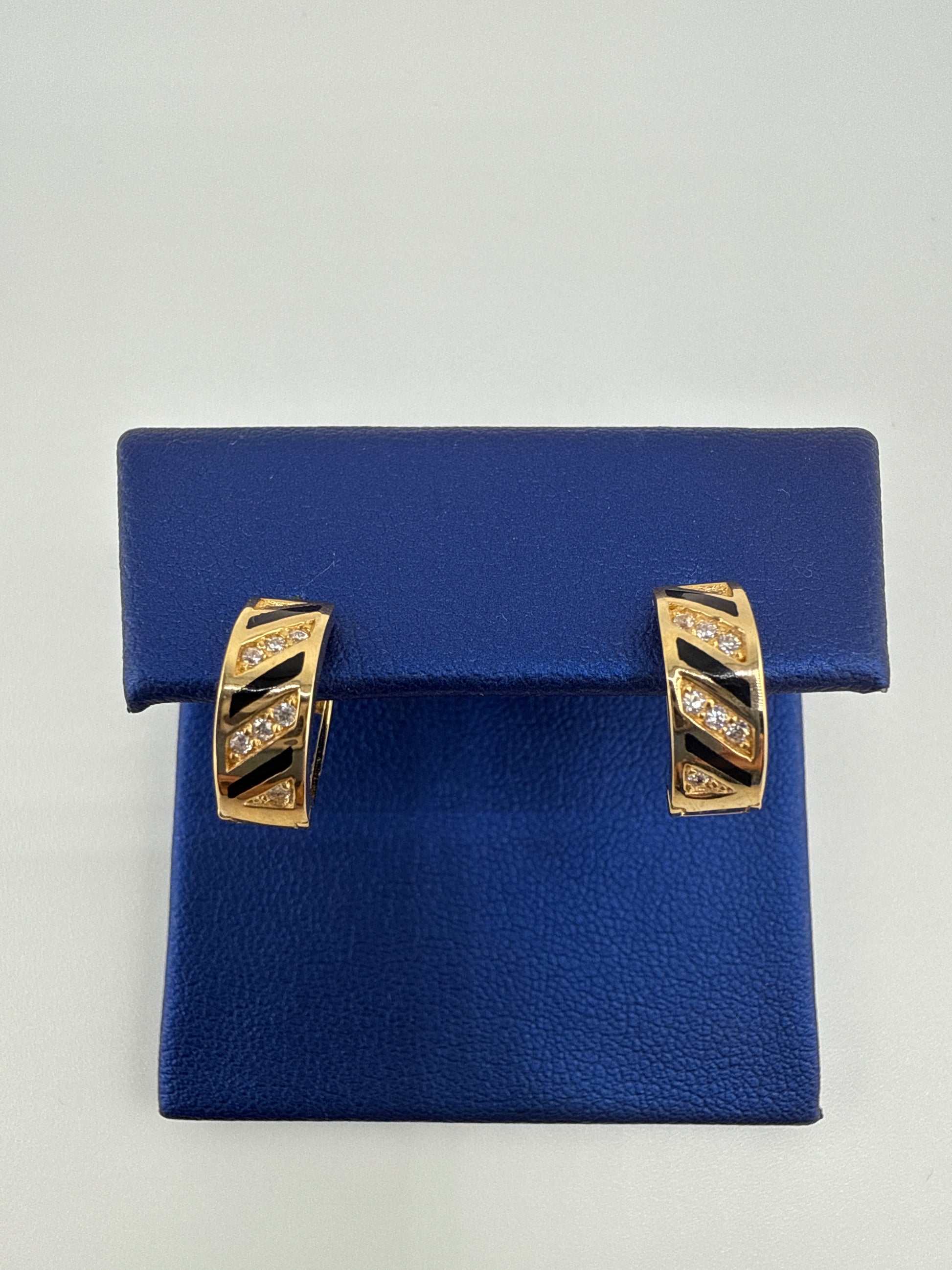 Experience elegance and versatility with our 14k gold huggie earrings. The two-toned striped design adds a touch of sophistication, while the open backing provides comfort and easy wearing. Elevate your style with these exquisite earrings.