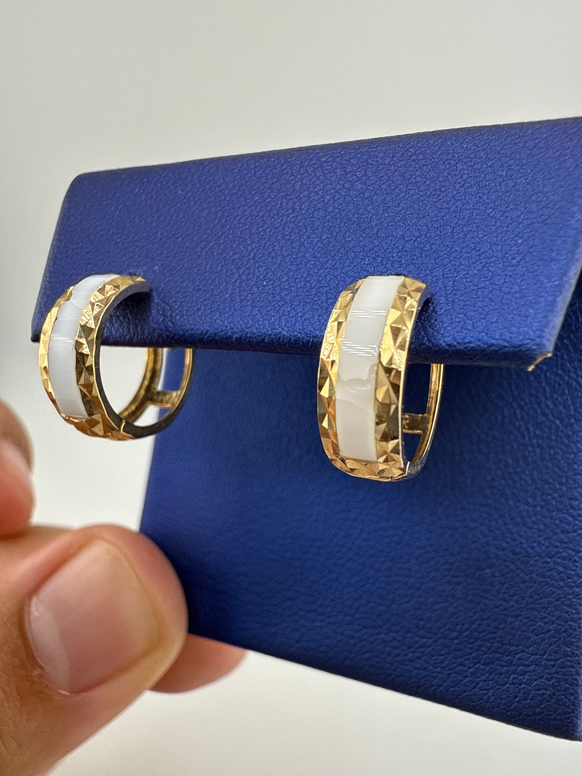Introducing our stunning 14k gold huggie earrings! With a two-toned striped and hammered design, they add a touch of elegance to any outfit. The open backing makes them easy to put on and ensures they stay comfortably in place. Elevate your style with these unique earrings today!