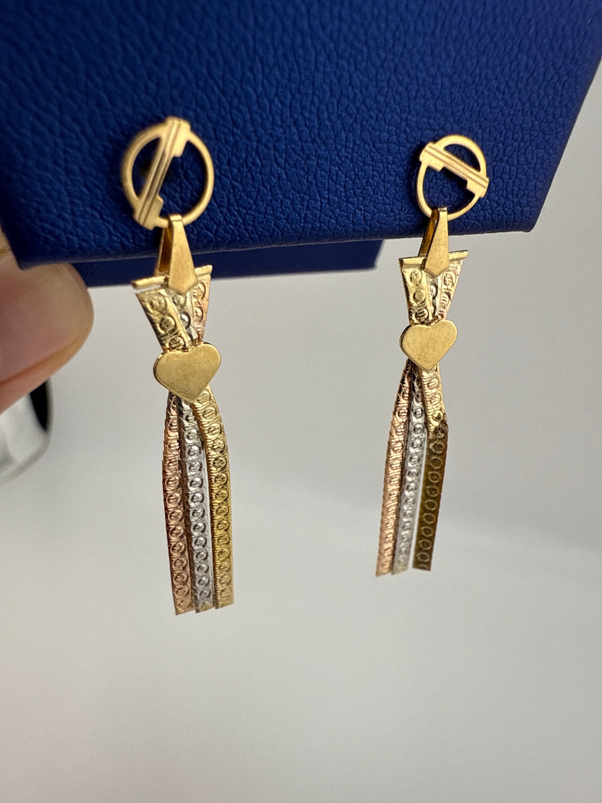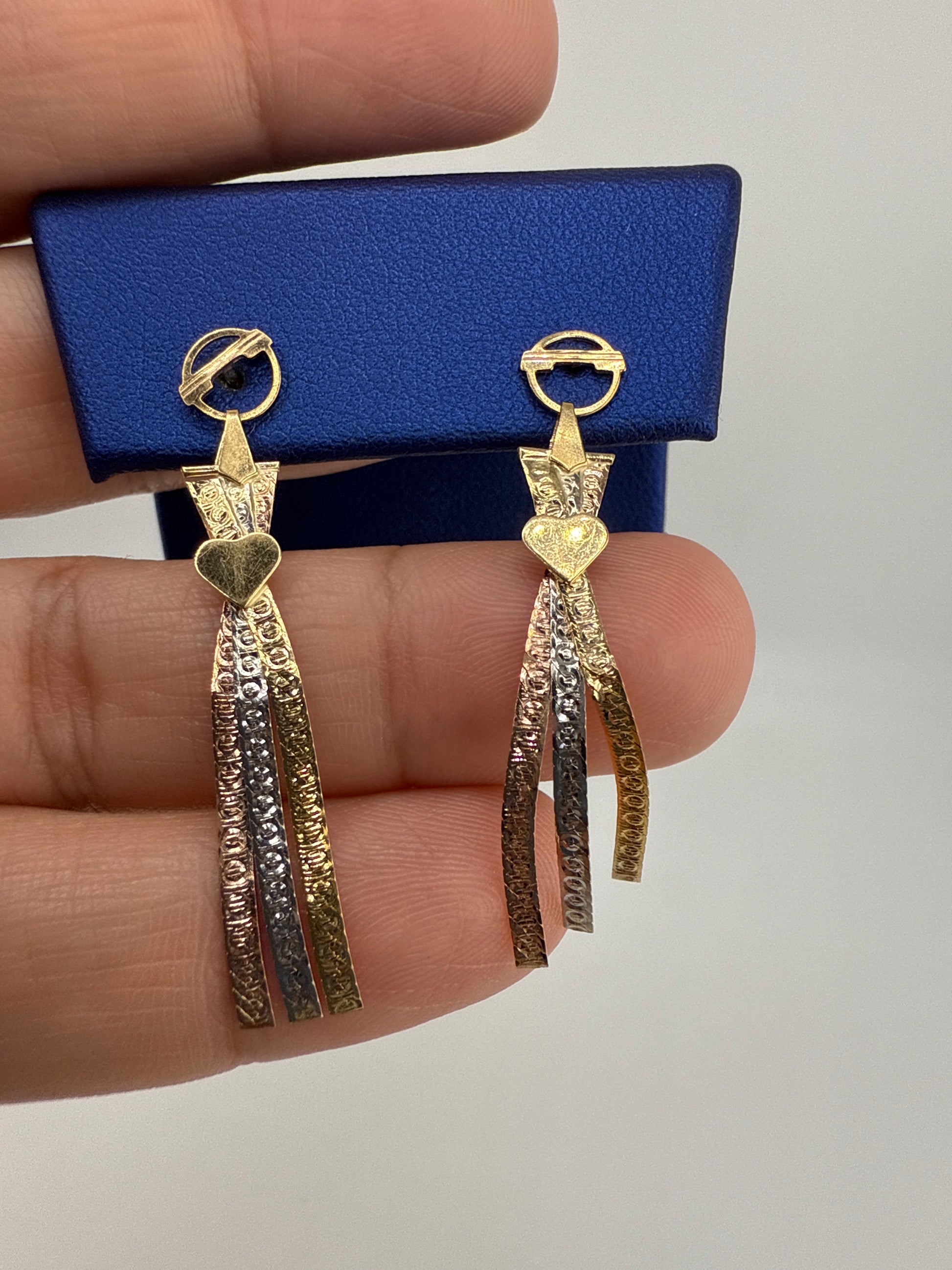 Add a touch of love and elegance to any outfit with these 14k Tri-Color Gold Posts! The delicate heart details add a romantic flair, while the high-quality gold will make you feel luxurious. Perfect for any occasion, these posts are a must-have for any jewelry lover.