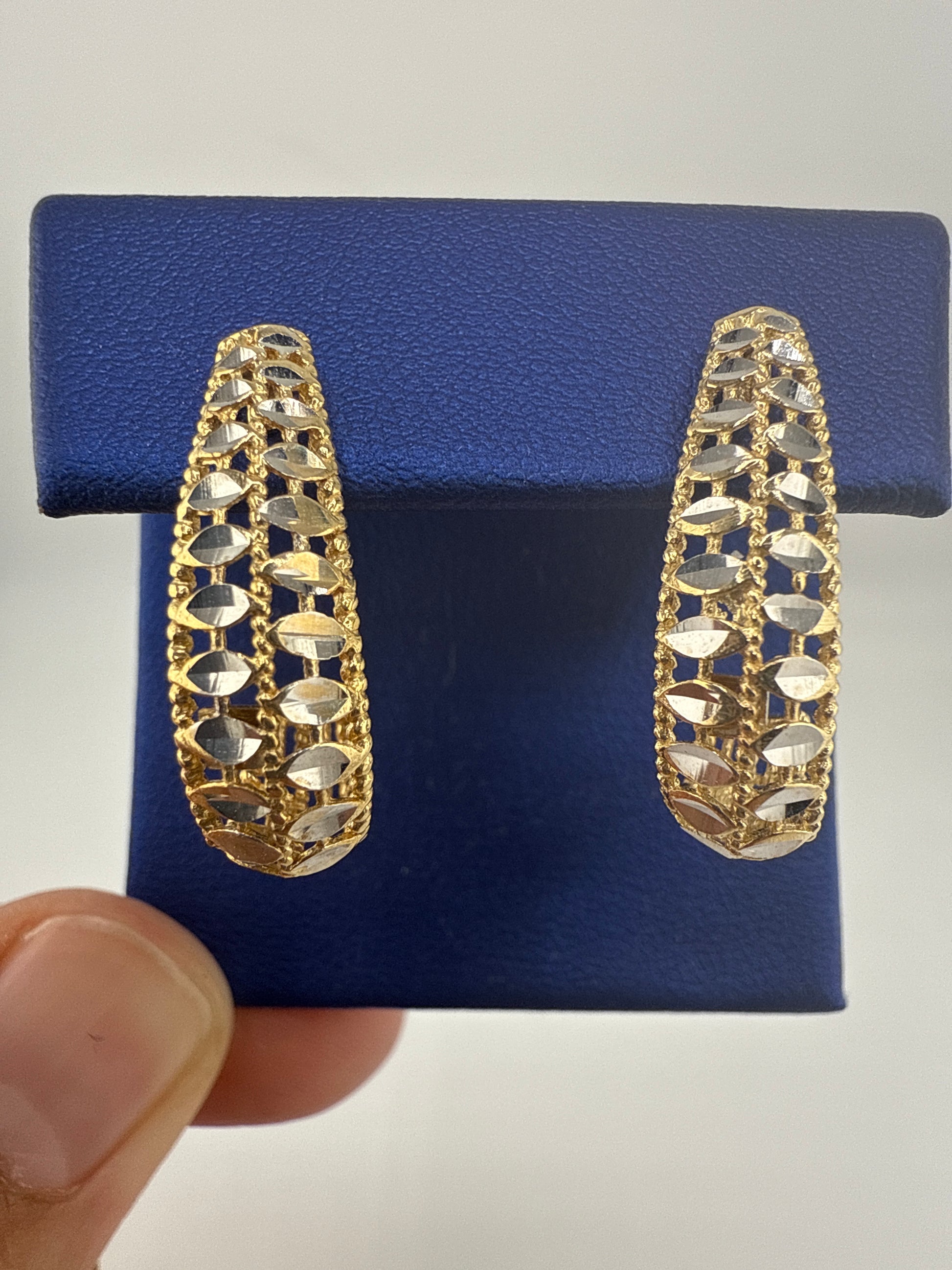 Enhance your everyday look with our stylish 14k two-toned Gold Post Earrings! The fancy design adds a touch of elegance to any outfit while the two-tone gold gives a unique and modern twist. Made with high-quality materials, these earrings are a must-have for any fashion-forward individual. Elevate your style with our 14k two-toned Gold Post Earrings!