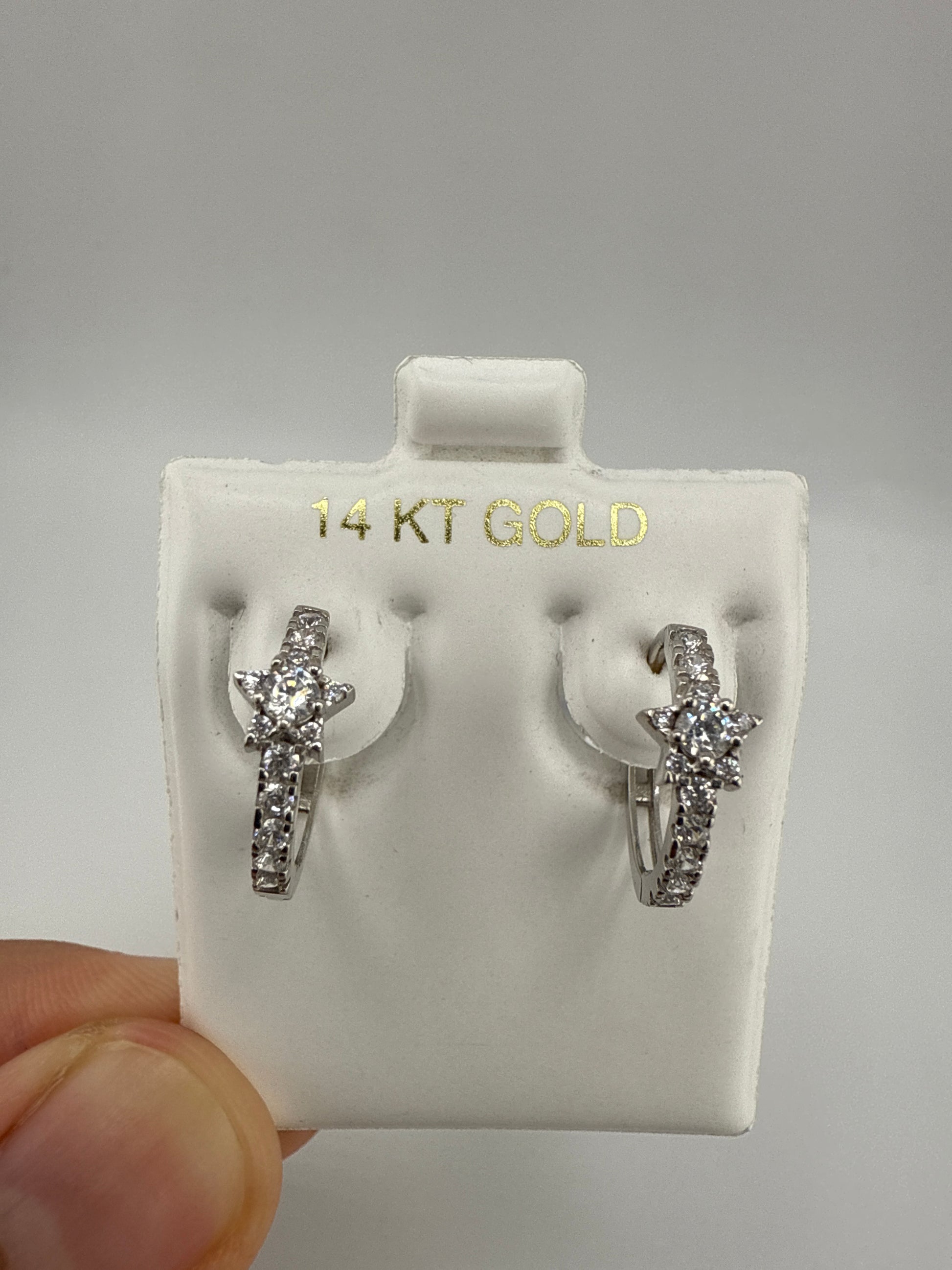 Sparkle like a star with these 14k White Gold and Zirconia small Huggies! The intricate Star design adds a touch of elegance and the high quality materials ensure long-lasting beauty. Elevate any look with these stunning earrings.
