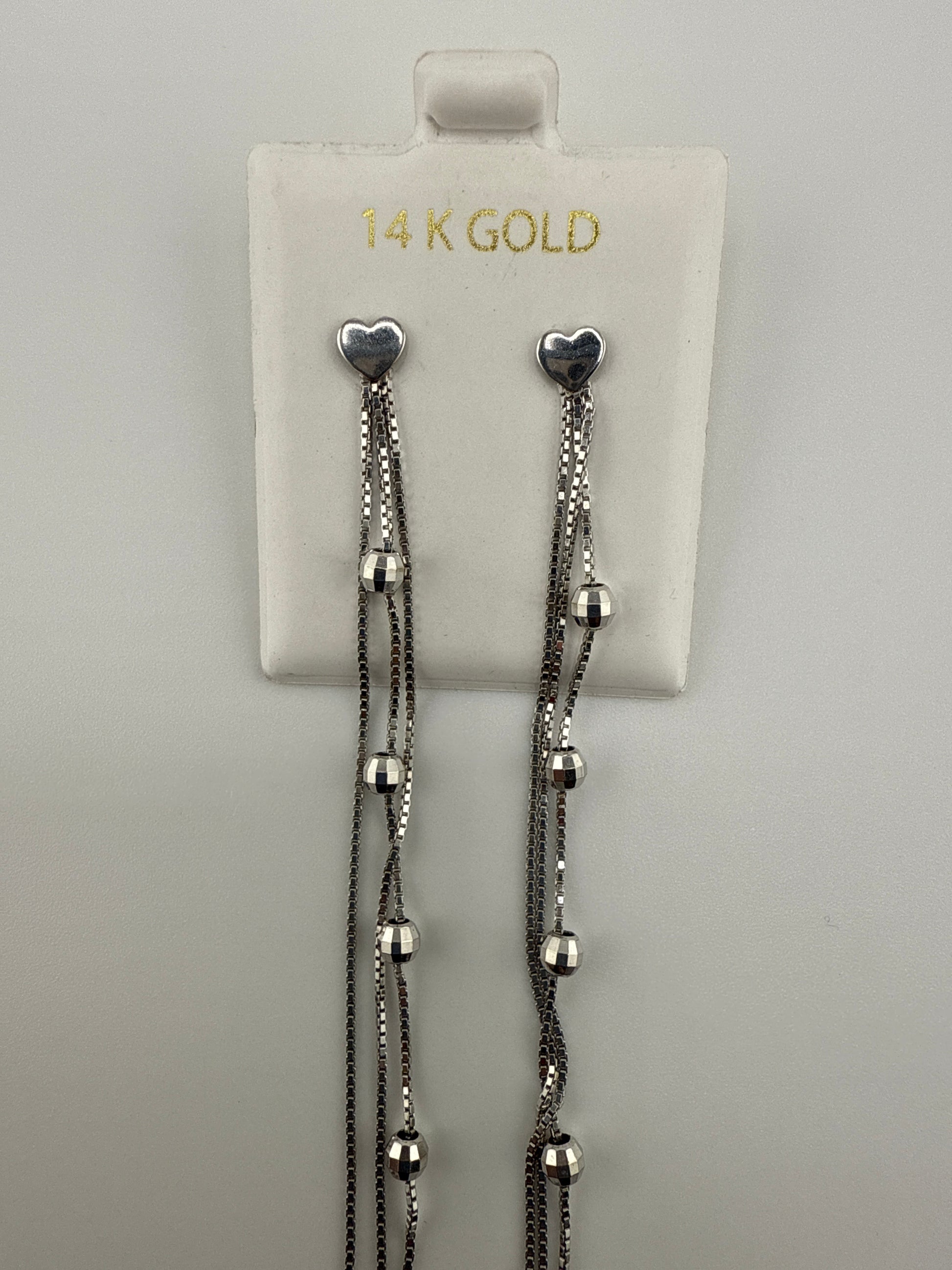 14k White Gold Dangle Post Earrings with heart and disco ball details