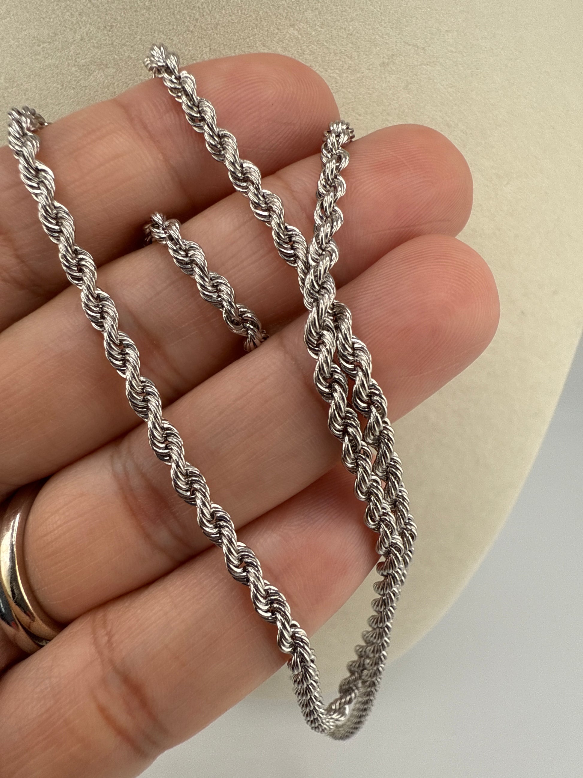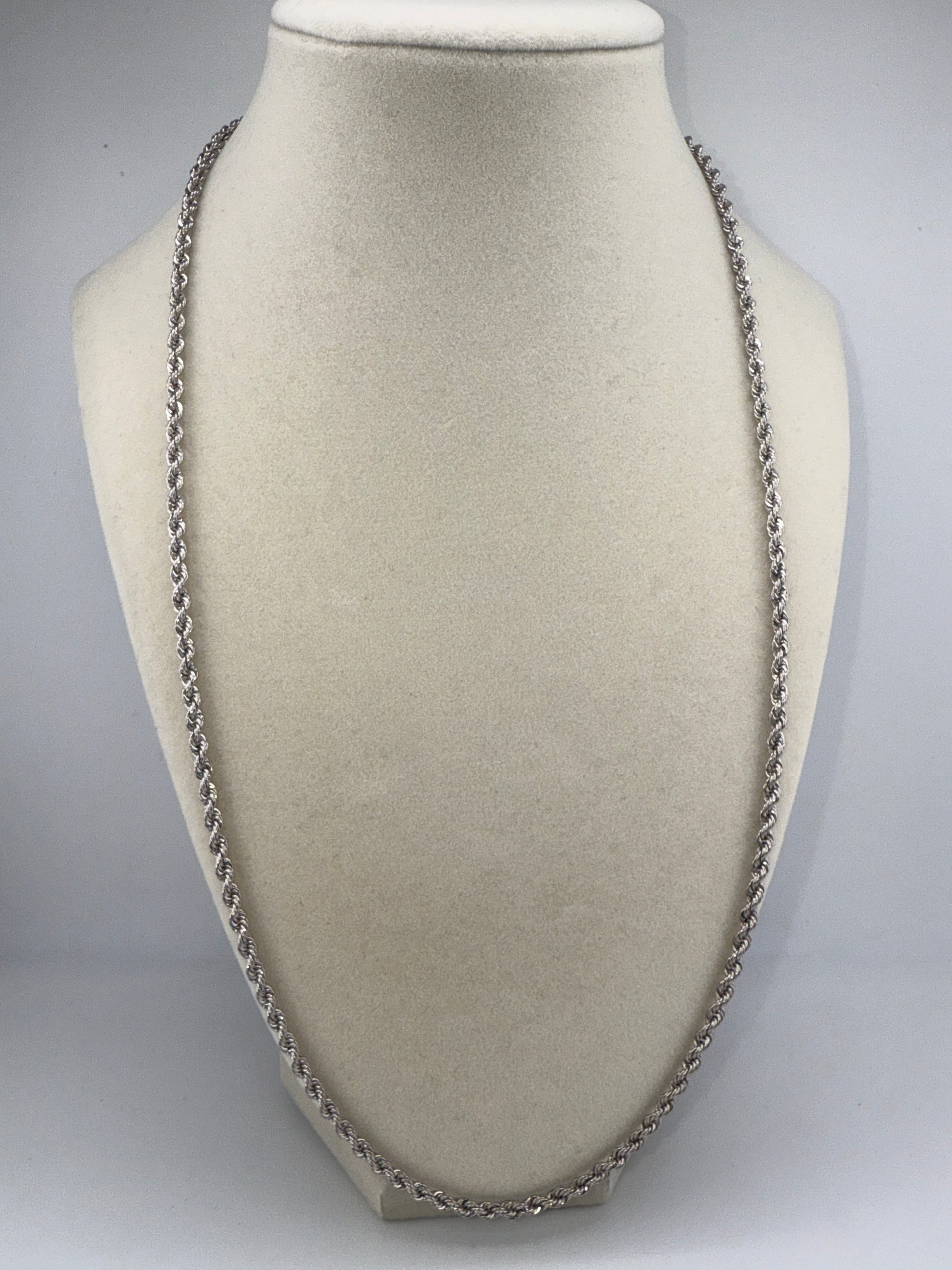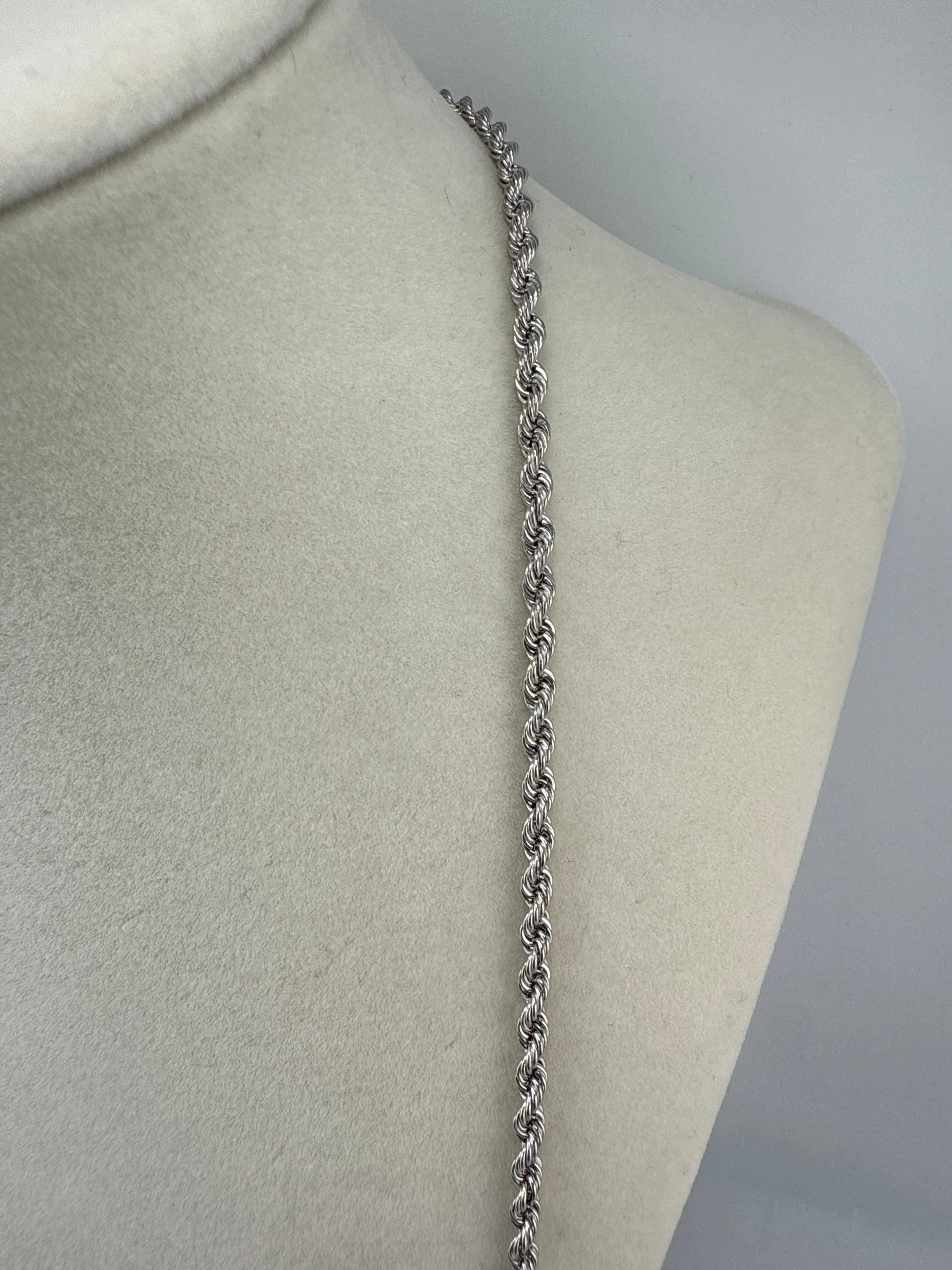 Add a touch of elegance to your style with our 14k White Gold Rope Chain! Made of high-quality 14k white gold, this 24 inch chain exudes luxury and sophistication. Perfect for everyday wear or special occasions, this chain is sure to elevate any outfit.