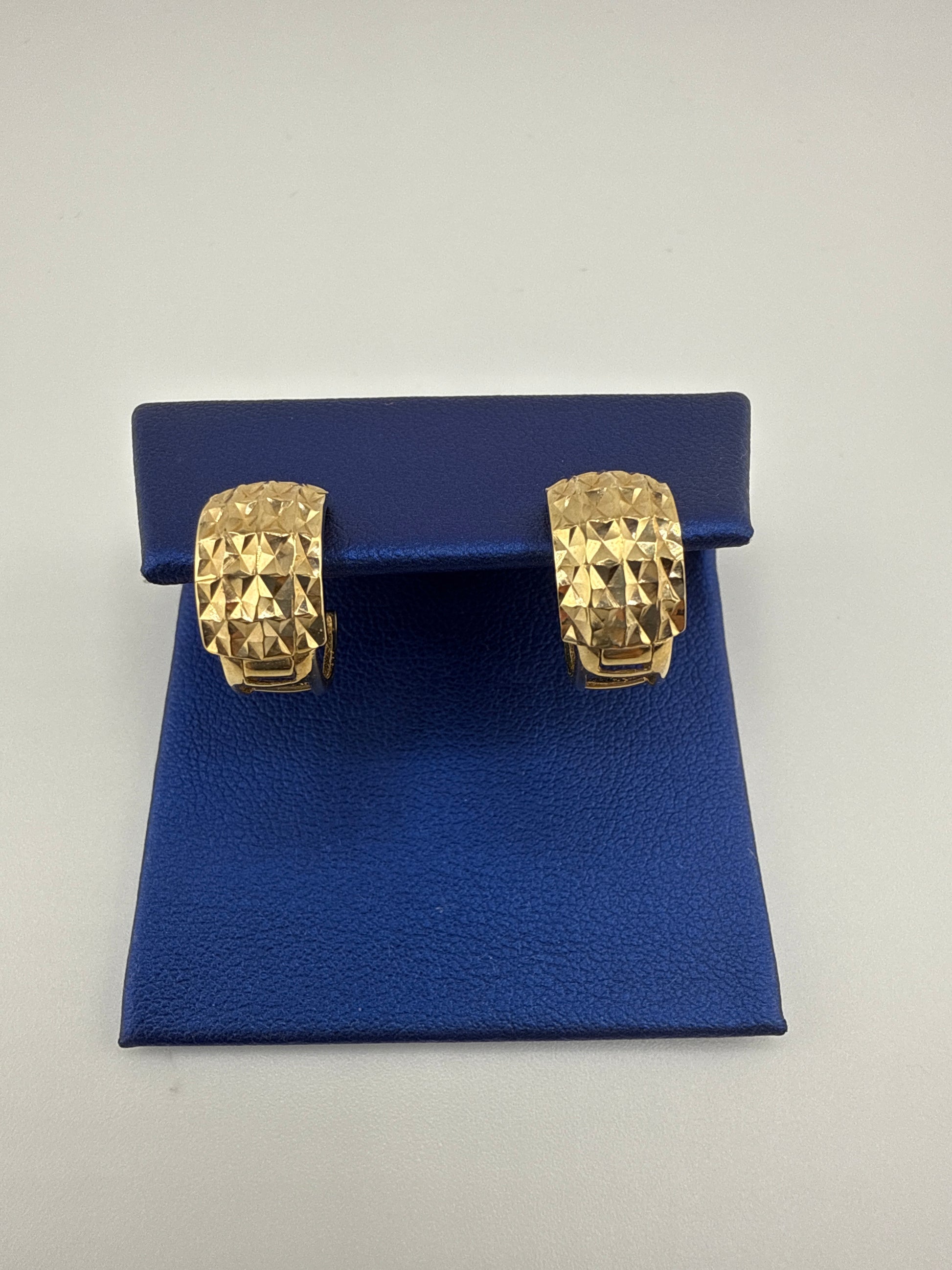 Everyday elegance and effortless style come together in our 14k yellow gold hammered huggie earrings. The unique hammered texture adds a touch of sophistication to any outfit, while the huggie design ensures a secure and comfortable fit. Perfect for elevating your look and boosting your confidence.