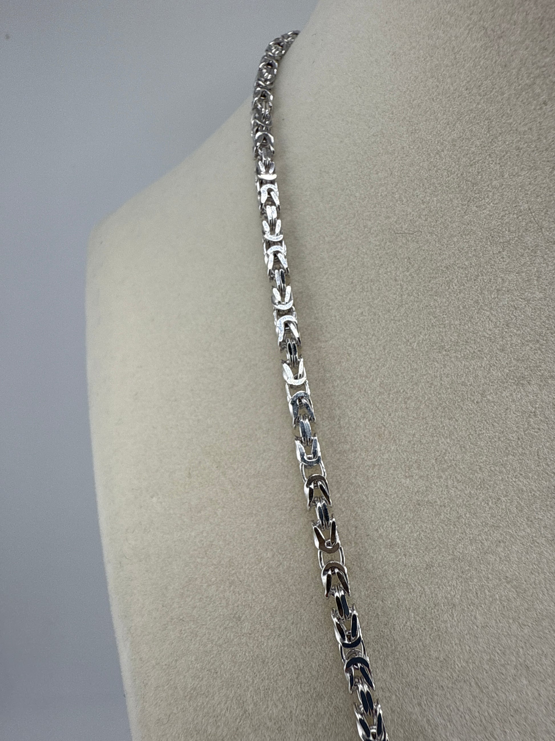 Elevate your style with our stunning Sterling Silver Byzantine Chain - Rhodium Plated. Crafted with 2.7mm wide links, this 20 inch chain adds a touch of elegance to any outfit. Made of high-quality sterling silver and plated with rhodium for a long-lasting shine. Upgrade your jewelry collection today!