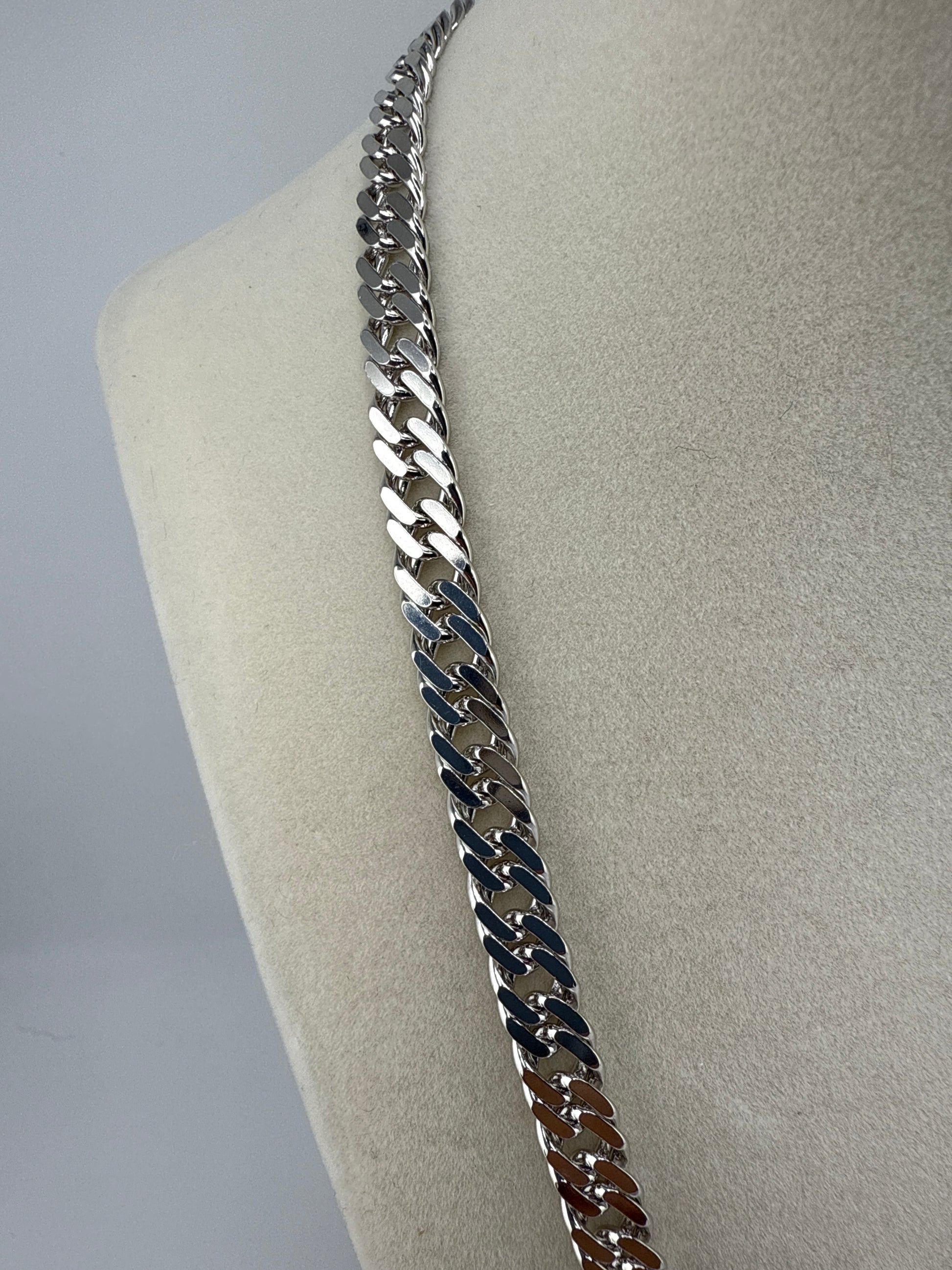 Elevate your style with our Sterling Silver Textured Double-Link Chain! Made with high-quality rhodium plating, this 20 inch chain adds a touch of elegance to any outfit. Its 7.5mm width and unique texture make it a statement piece that will catch everyone's eye. Perfect for any occasion, this chain is the perfect addition to your jewelry collection.