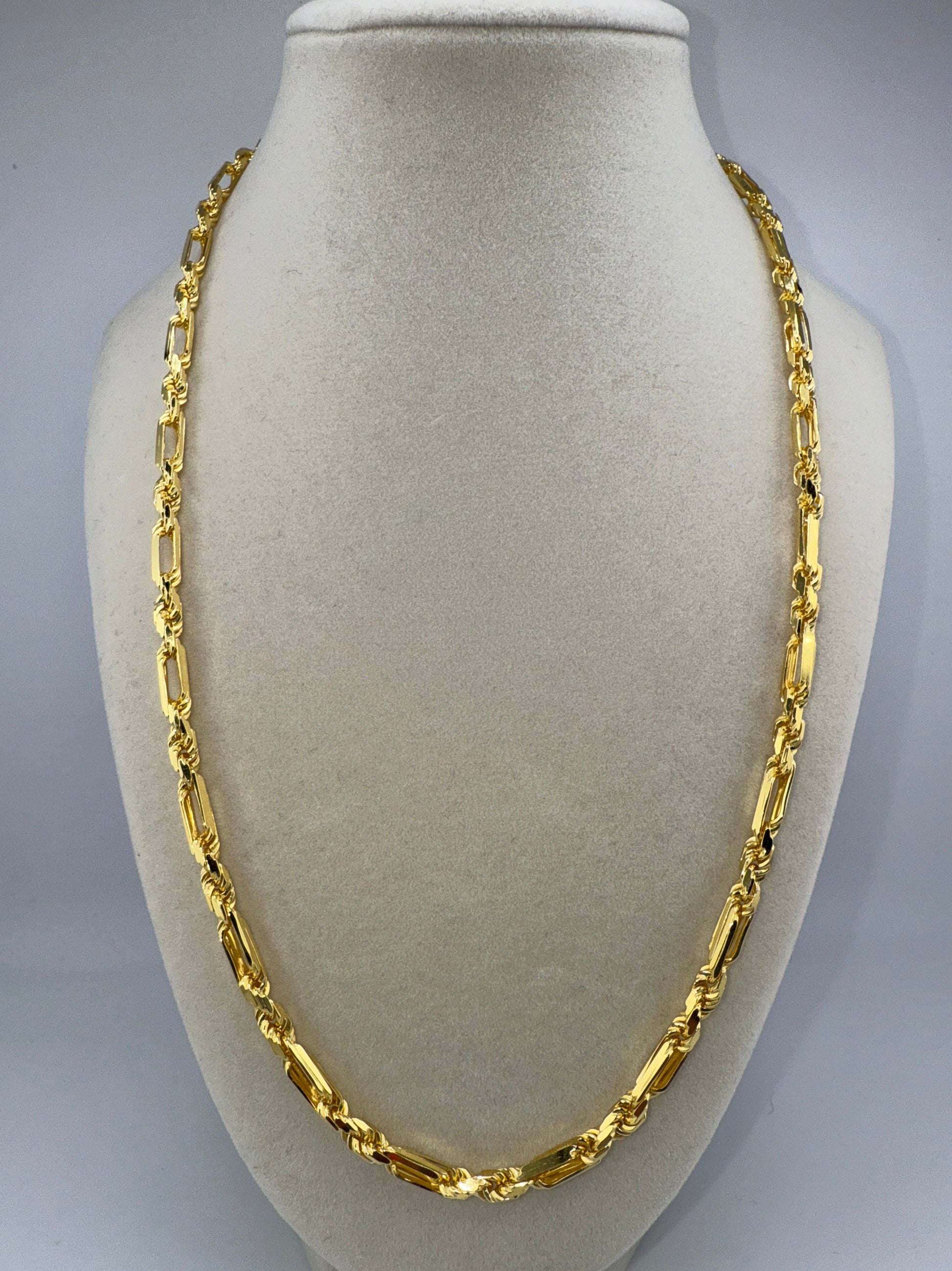 Elevate any look with our luxurious Sterling Silver 22inch 4mm Figarope Chain - Gold Plated. Made with high-quality sterling silver and gold plating, this chain adds a touch of elegance and sophistication to any outfit. The 4mm thickness adds a subtle statement to your style. Perfect for any occasion!