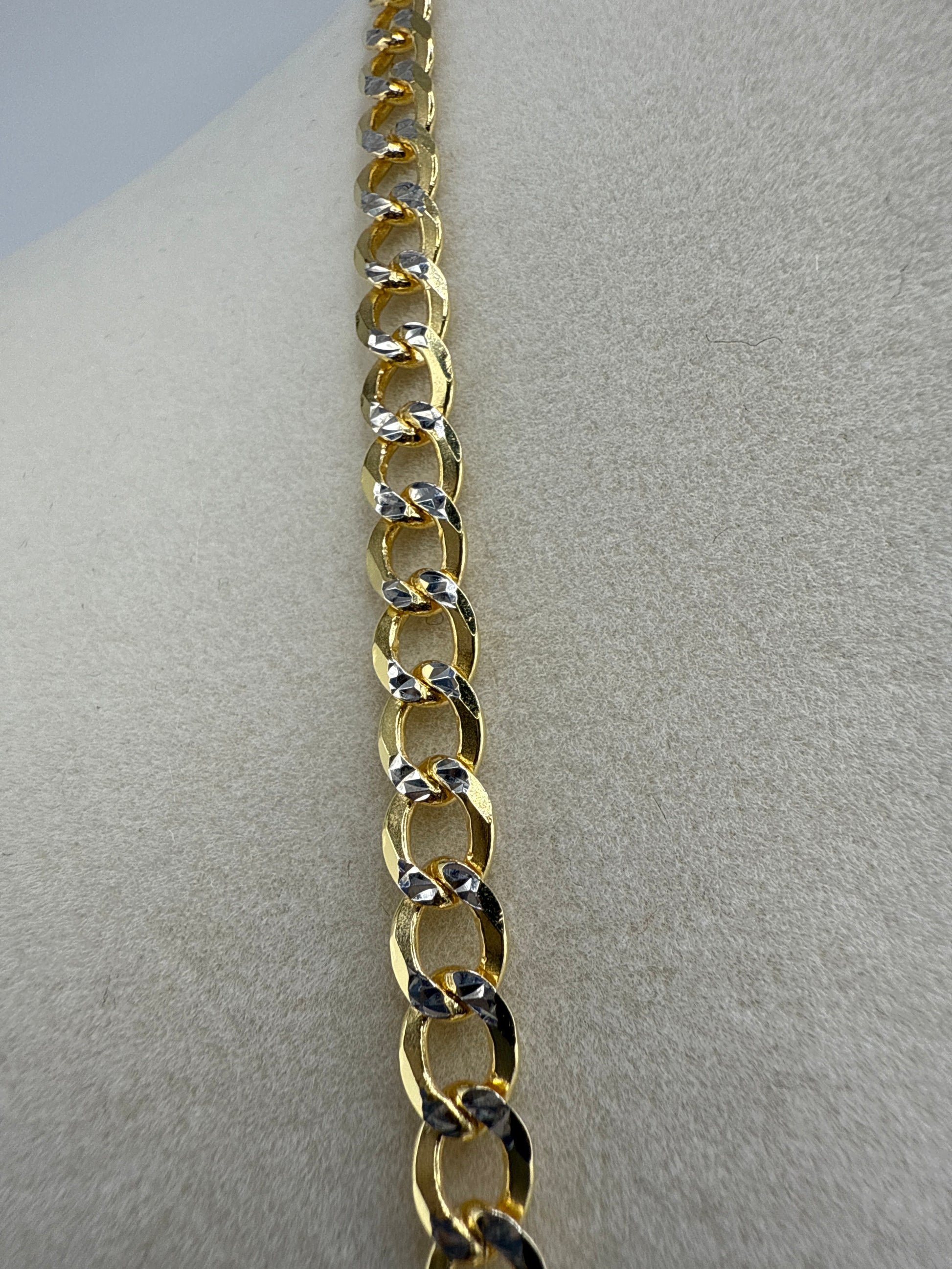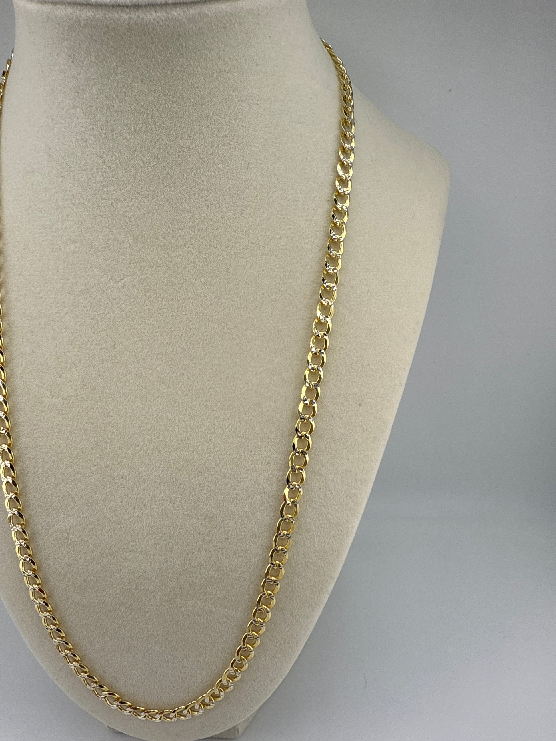 Indulge in luxury with our Sterling Silver 22inch 5mm Pave Cuban Chain - Gold Plated! Crafted with the finest sterling silver and plated in captivating gold, this chain adds a touch of elegance to any outfit. Its pave design sparkles in the light, making you stand out from the crowd. Dare to make a statement with this glamorous chain.