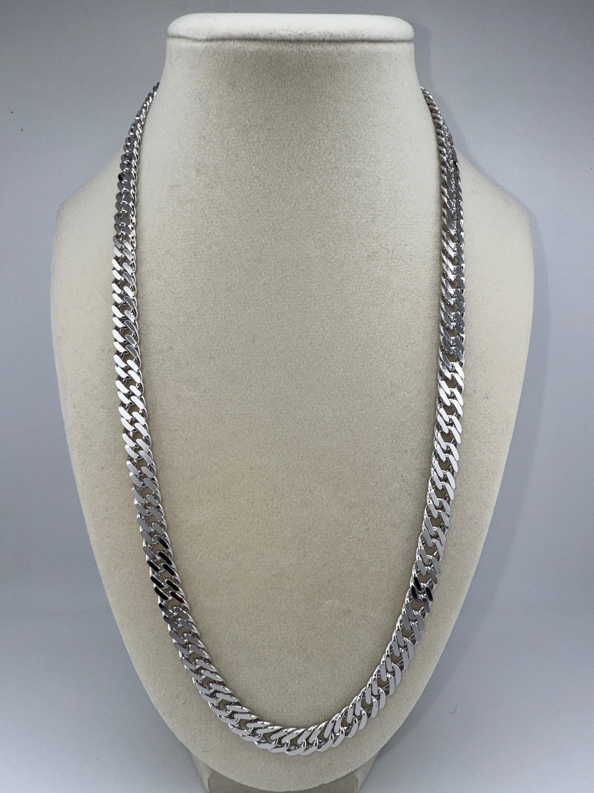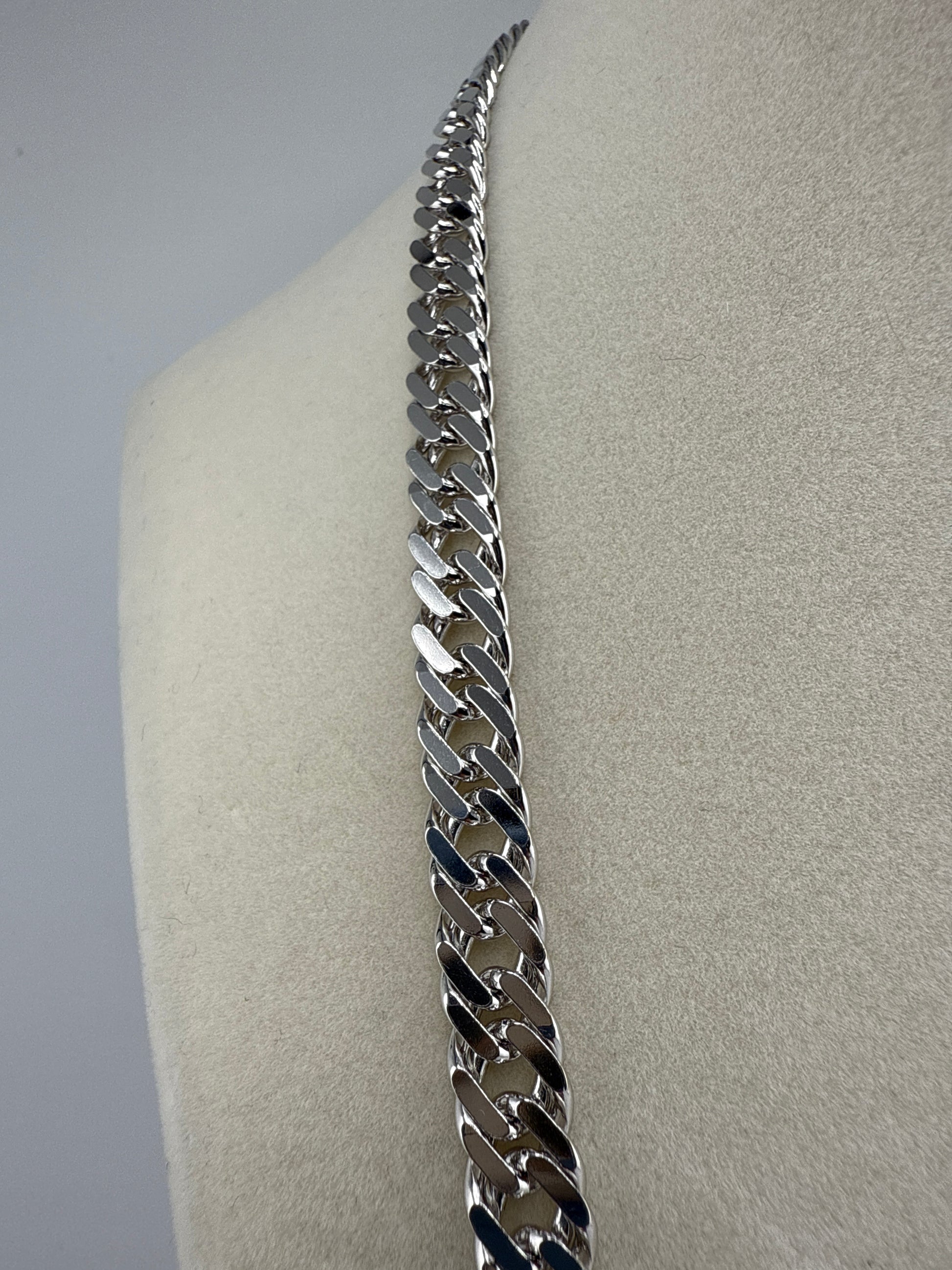Sterling Silver 22inch 7.5mm Textured Double-Link Chain - Rhodium Plated