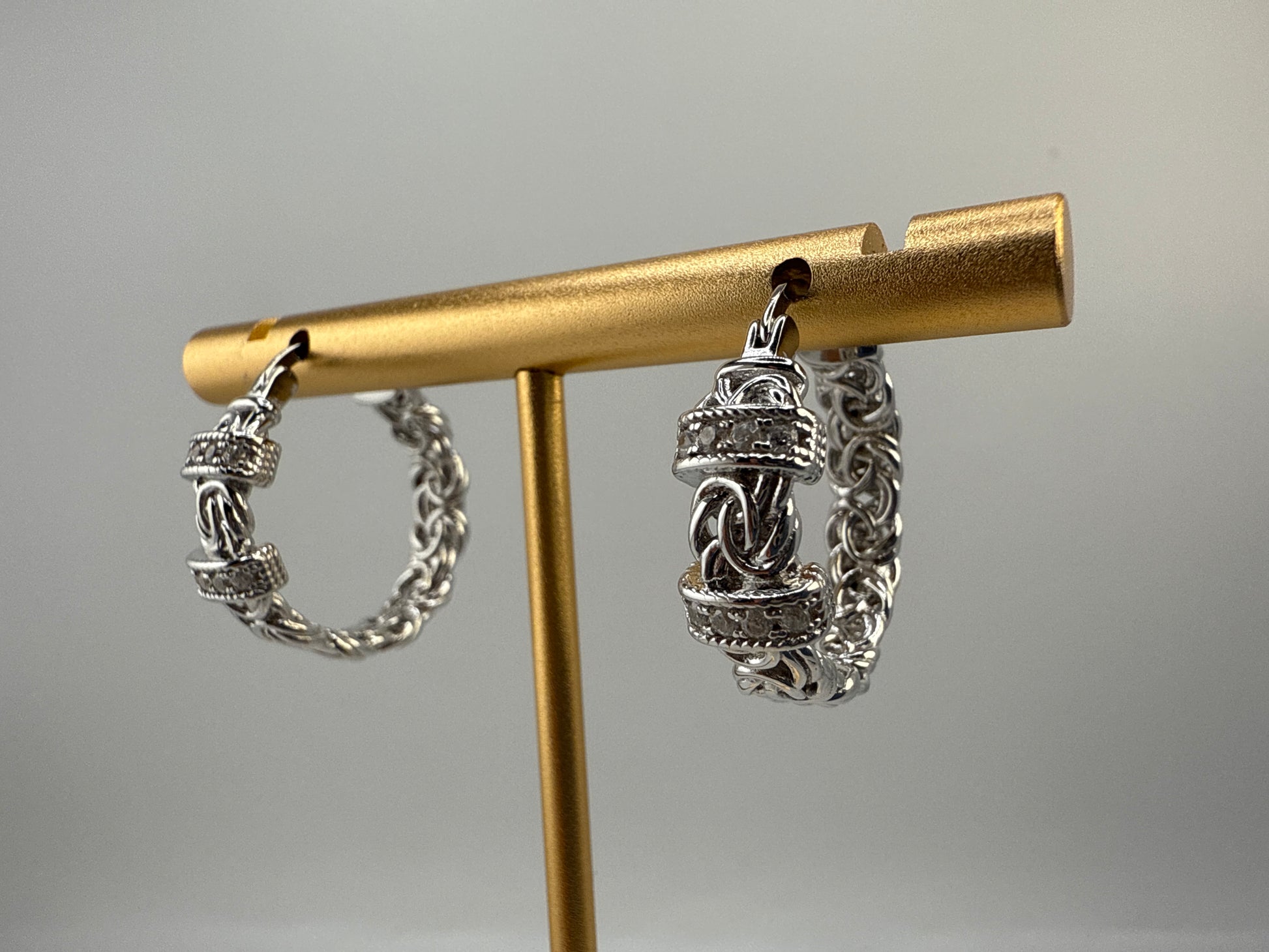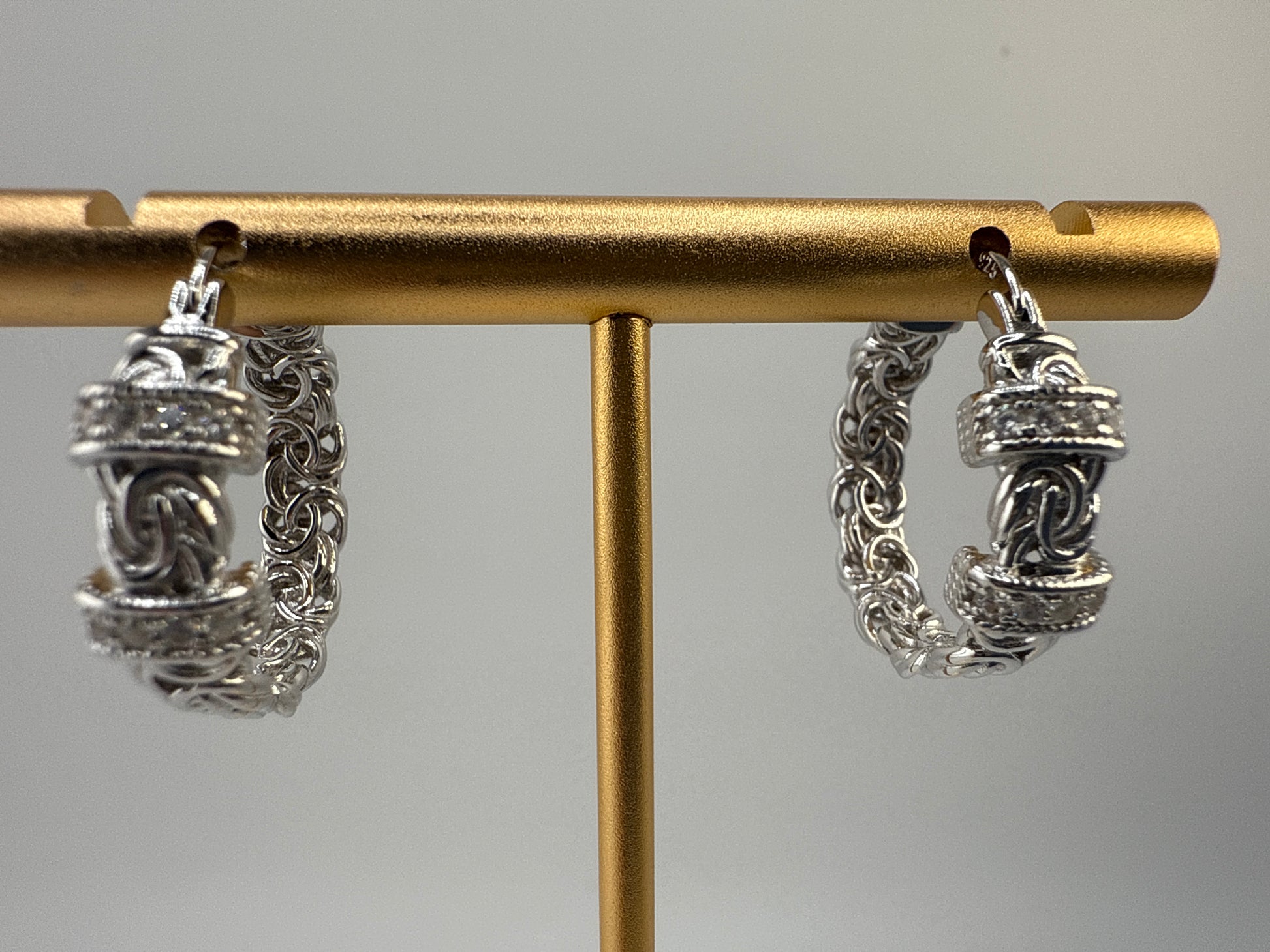 Sterling Silver 22mm Byzantine Design Zirconia Hoop Earrings