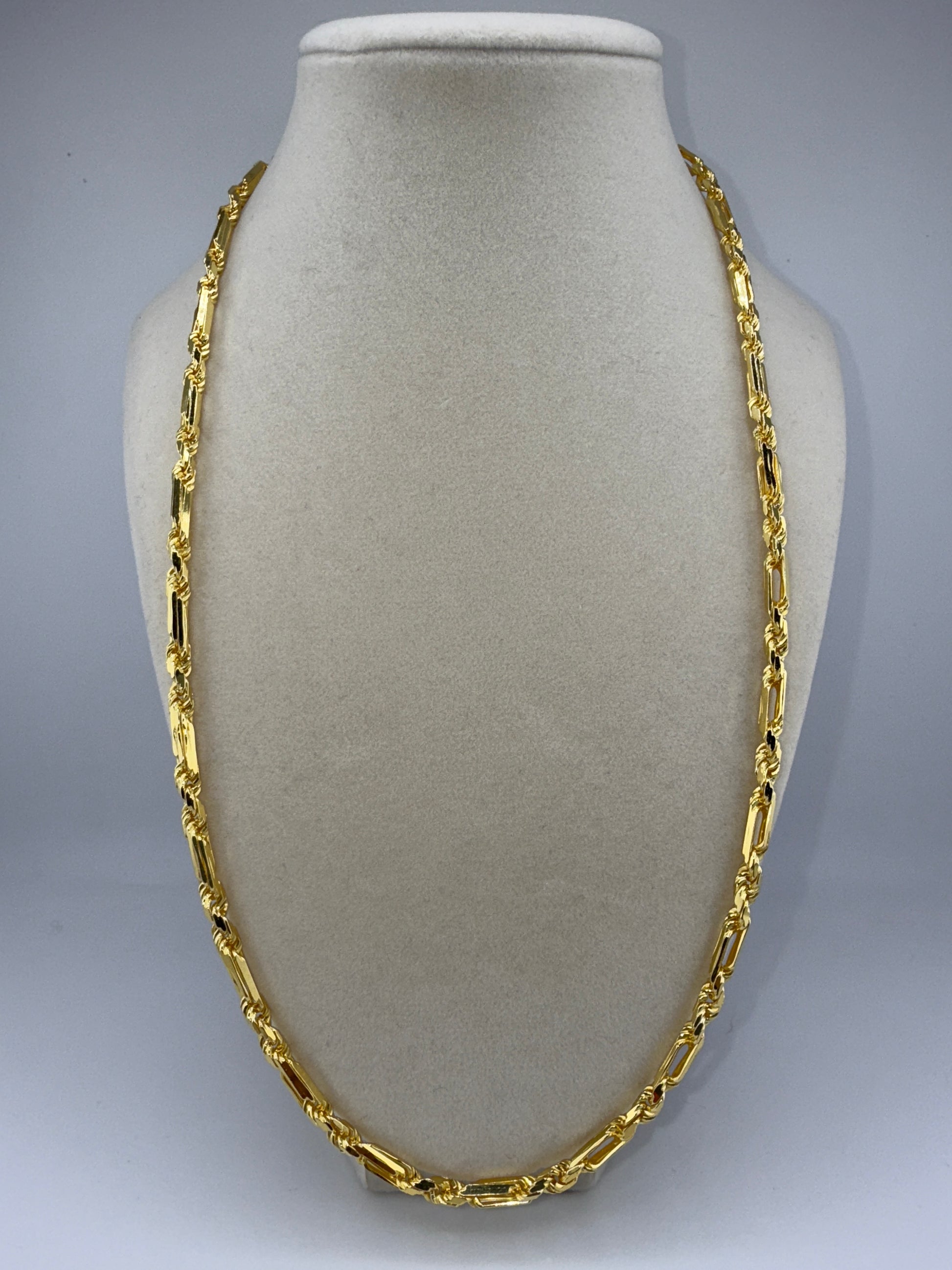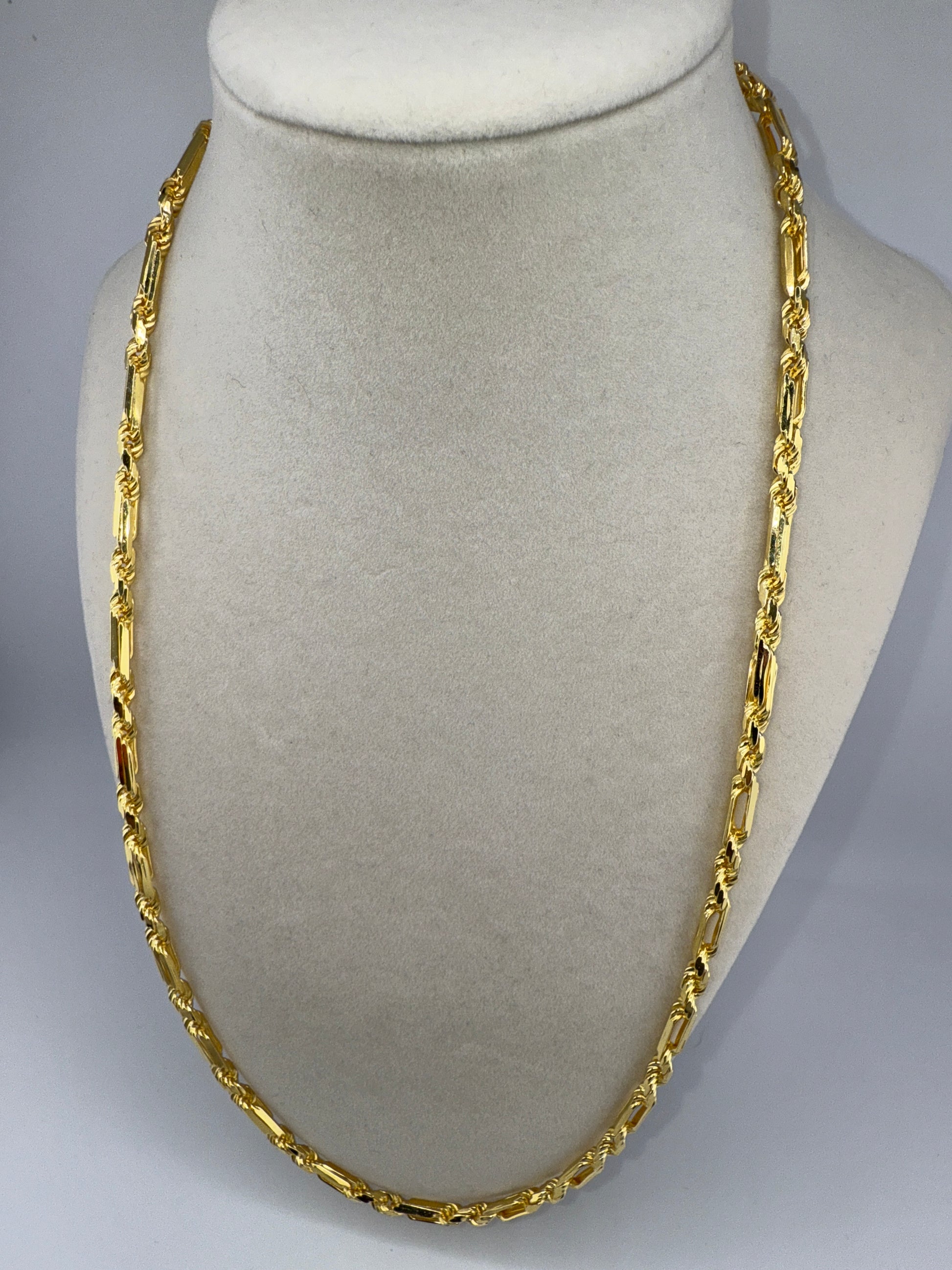 Elevate any look with our luxurious Sterling Silver 22inch 4mm Figarope Chain - Gold Plated. Made with high-quality sterling silver and gold plating, this chain adds a touch of elegance and sophistication to any outfit. The 4mm thickness adds a subtle statement to your style. Perfect for any occasion!
