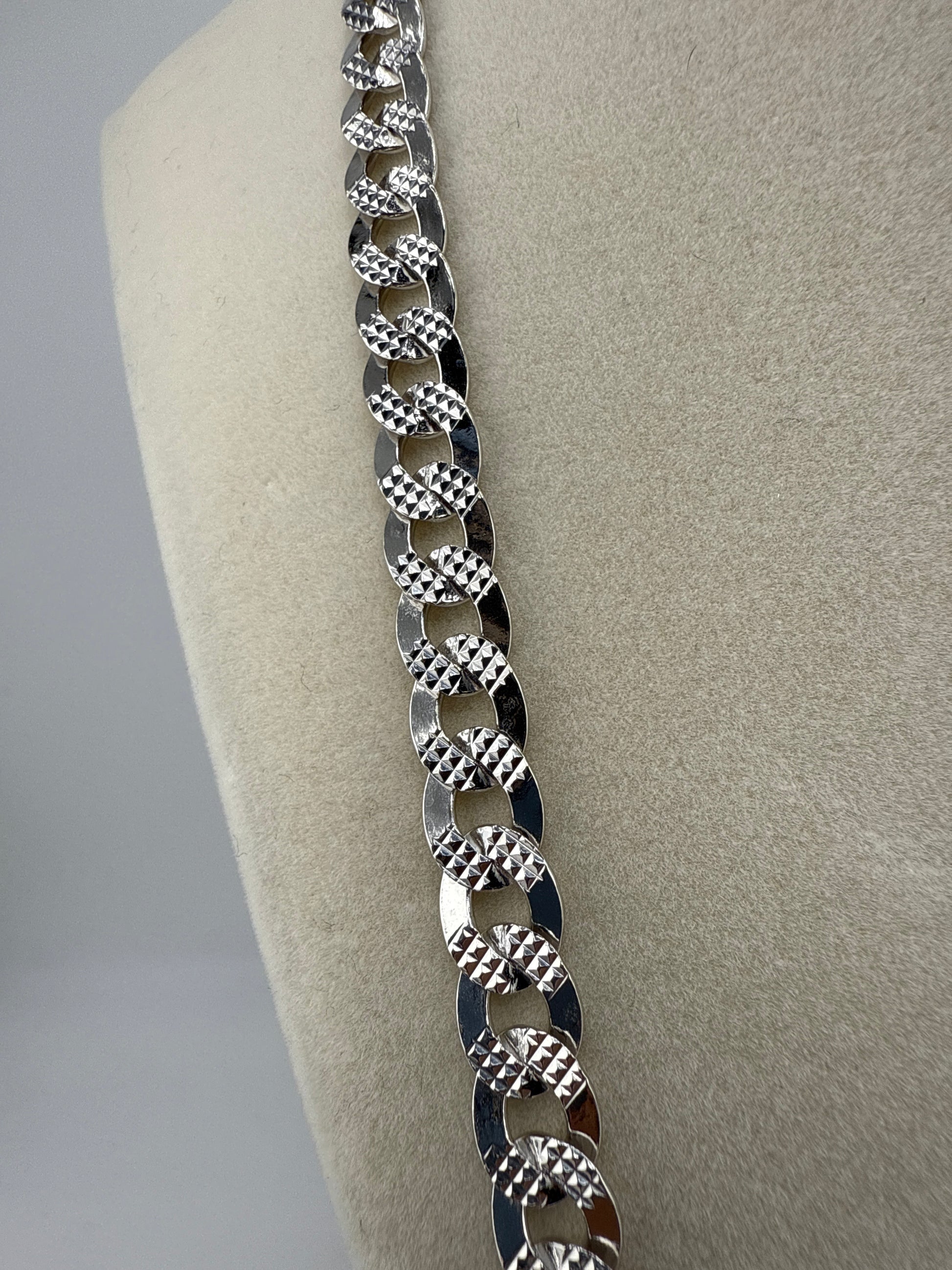 Sterling Silver 24inch 7.5mm Textured & Polished Cuban Chain, Rodium-Plated