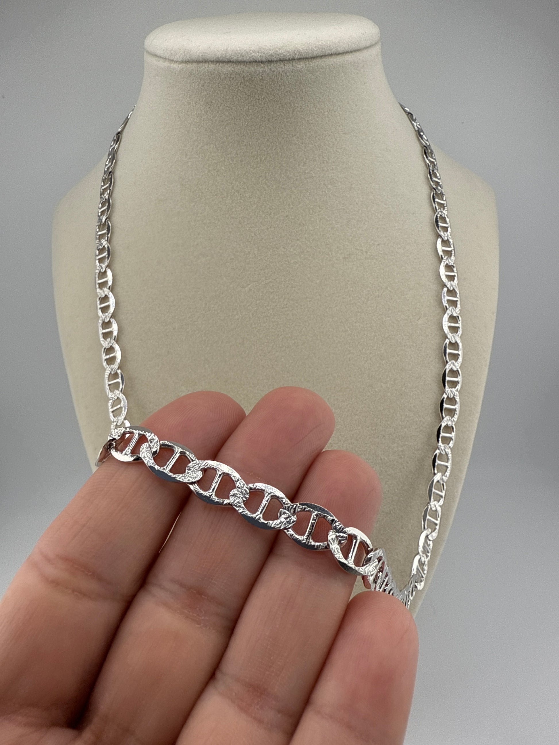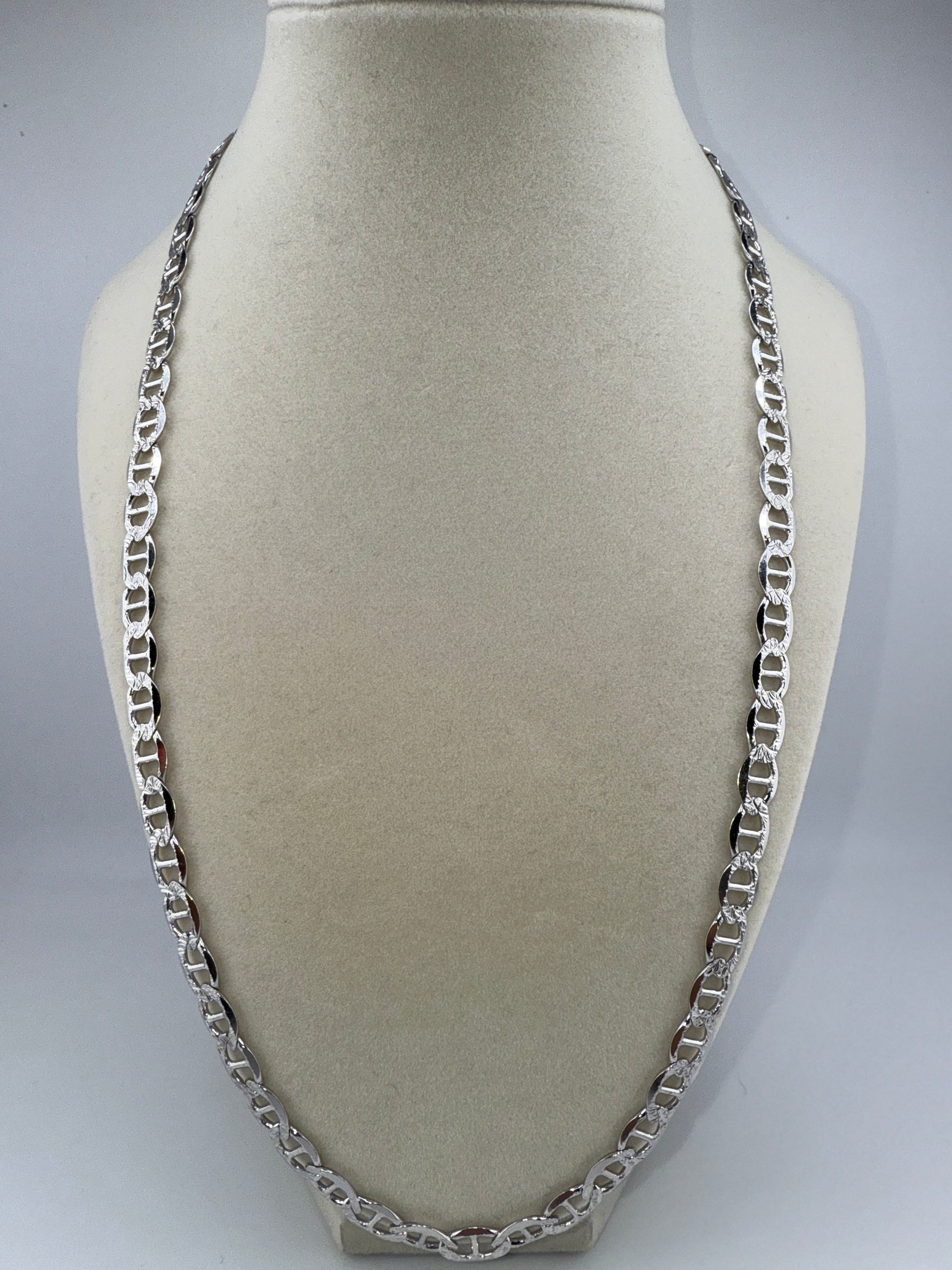 Sterling Silver 24inch 7mm Pave Marina Chain - Rhodium Plated