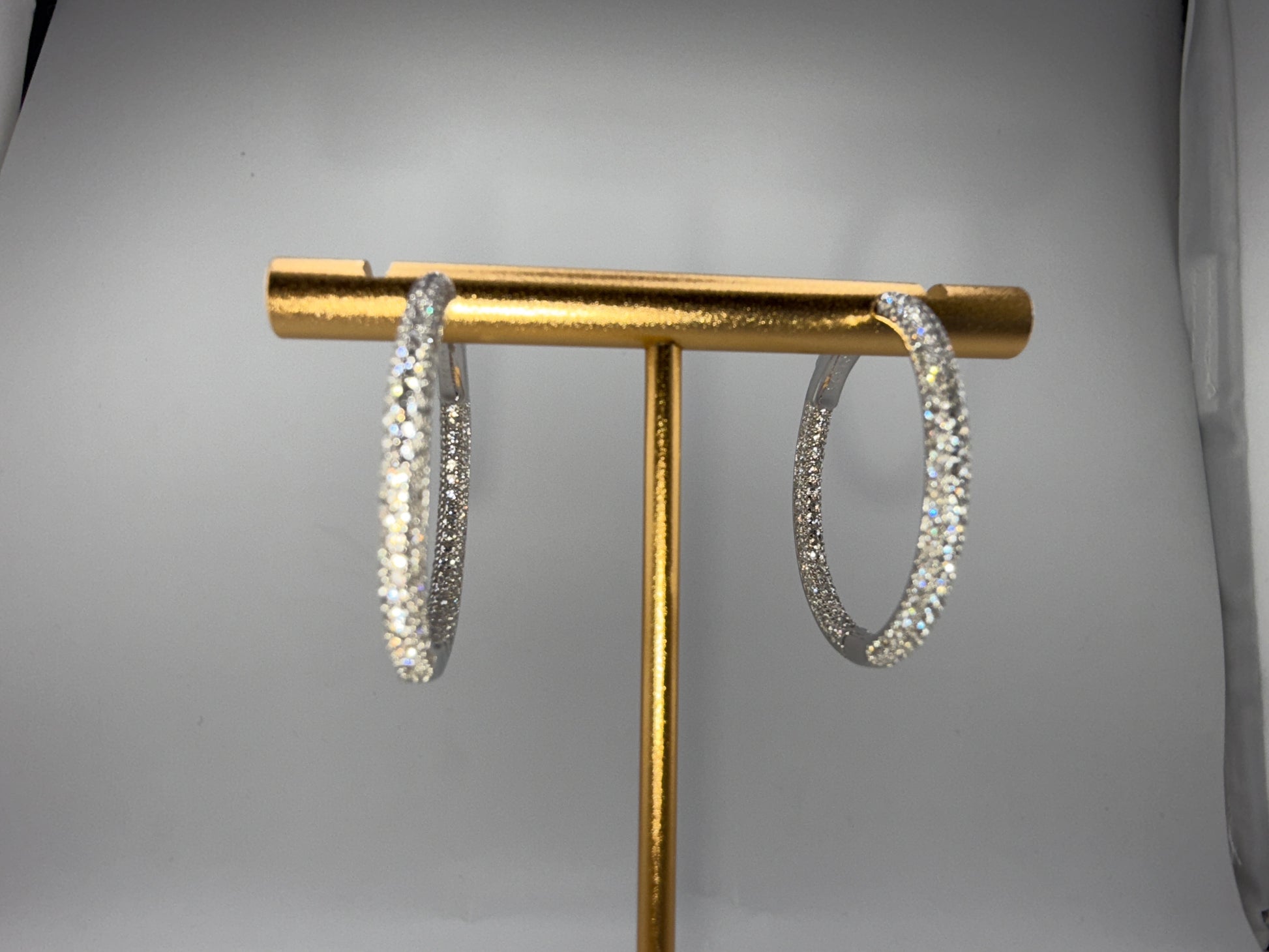 Glam up your everyday look with our Sterling Silver Micro Pave Earrings! The sparkling zirconia stones, set in a 3x30mm inside-outside hoop design, will add a touch of elegance to any outfit. Made from high-quality sterling silver, these hoops are both stylish and durable.