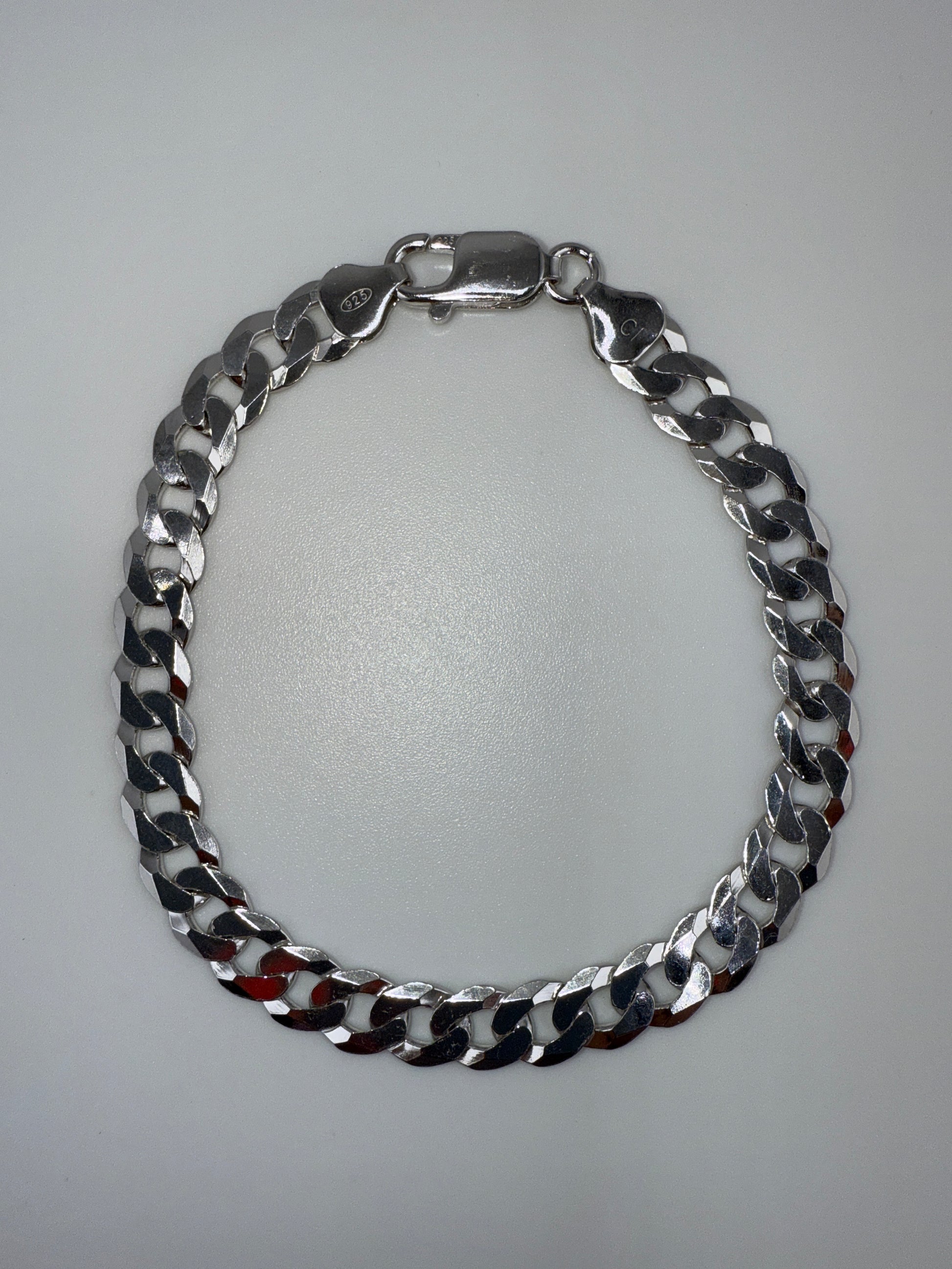 Sterling Silver 8inch 7.85mm Cuban Chain - Rhodium Plated