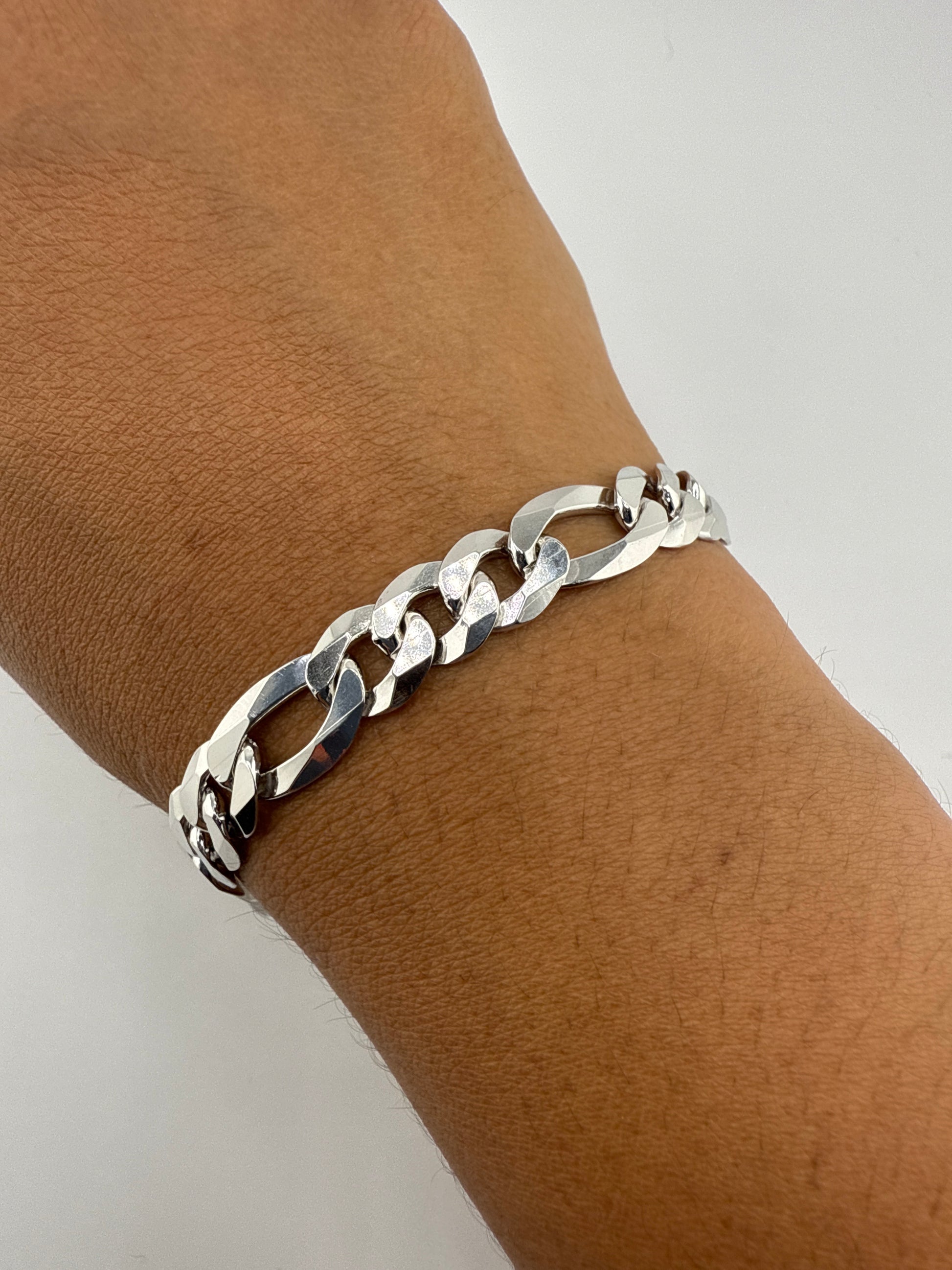 Sterling Silver 8inch 8.6mm Figaro Chain - Rhodium Plated