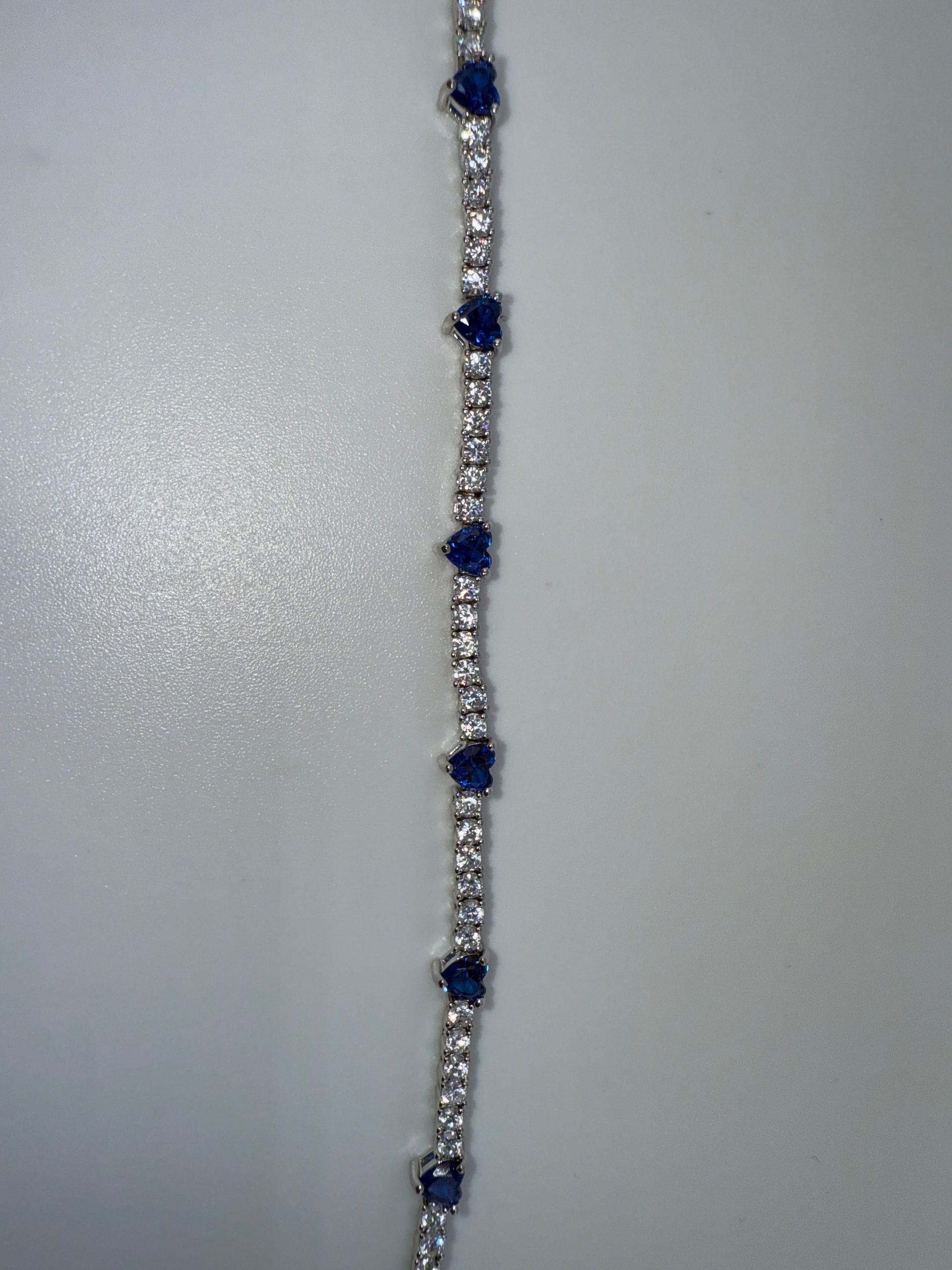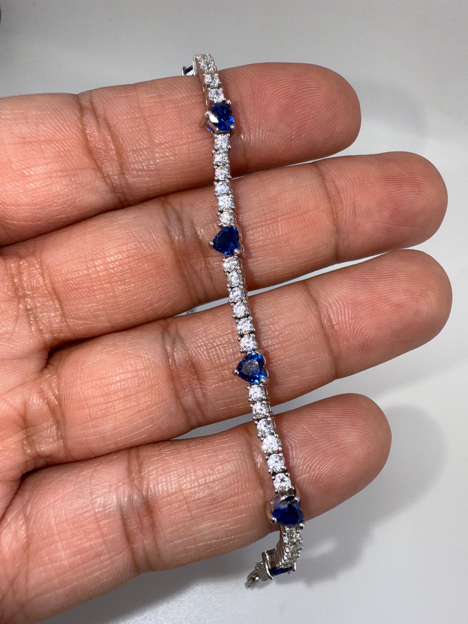 Sterling Silver Heart and Zirconia Tennis Bracelet - Sapphire Zirconia