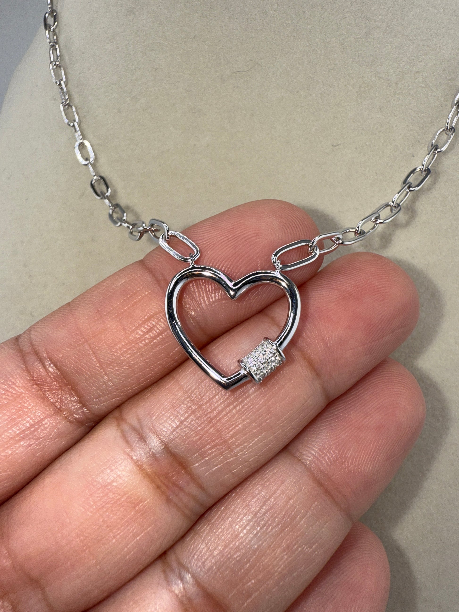 Sterling Silver Micro Pave Zirconia Heart Carabiner Paperclip Necklace