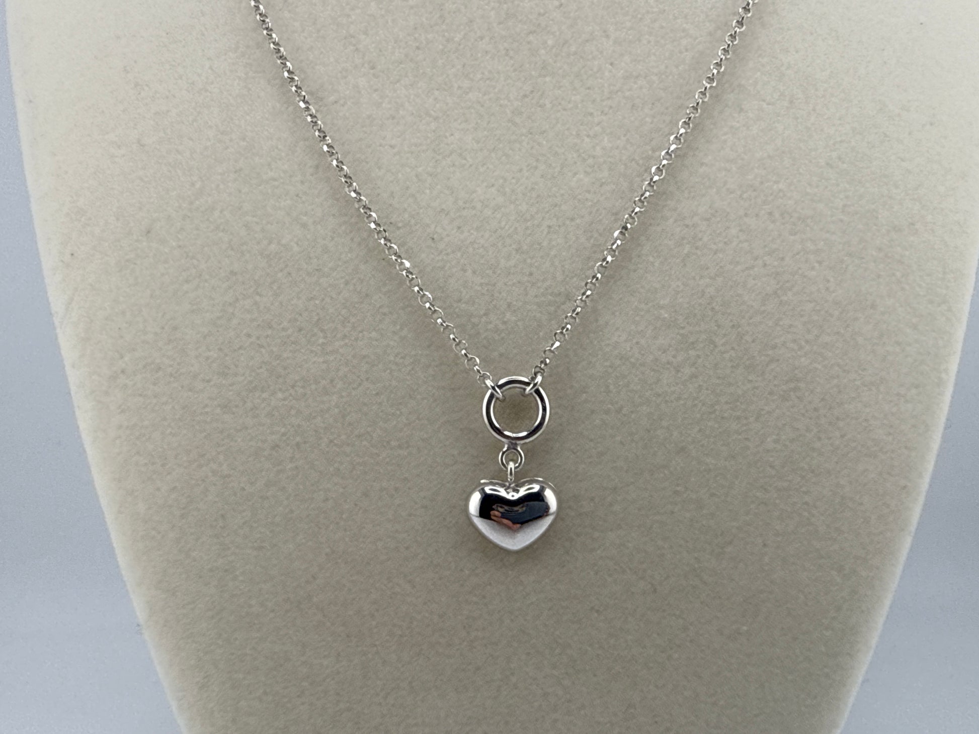 Add a touch of elegance and love to your outfit with our Sterling Silver Heart Necklace! Made from high-quality sterling silver, this necklace features a beautiful and delicate heart pendant that will make a statement wherever you go. Perfect for a romantic gesture or as a thoughtful gift for a loved one!
