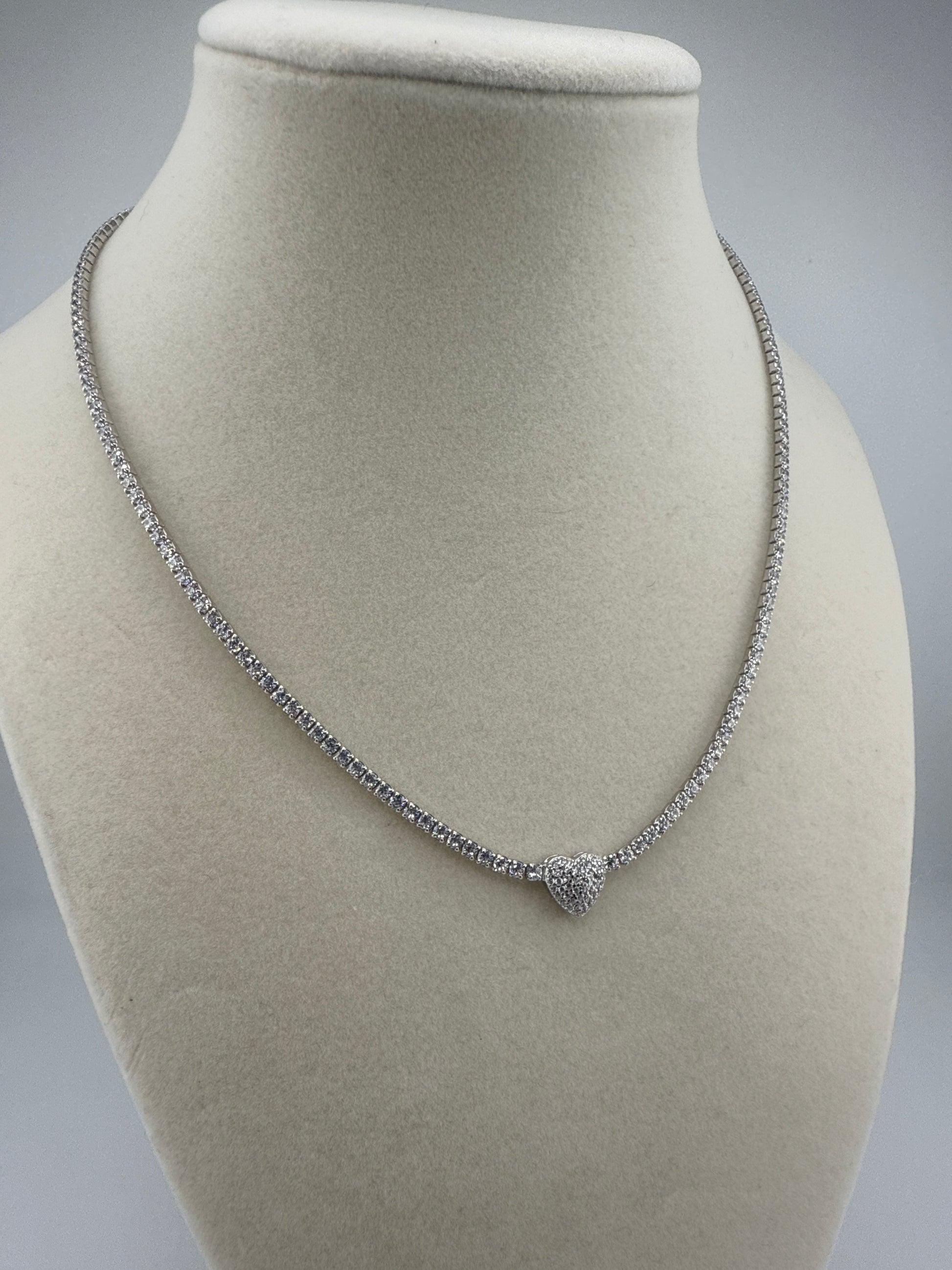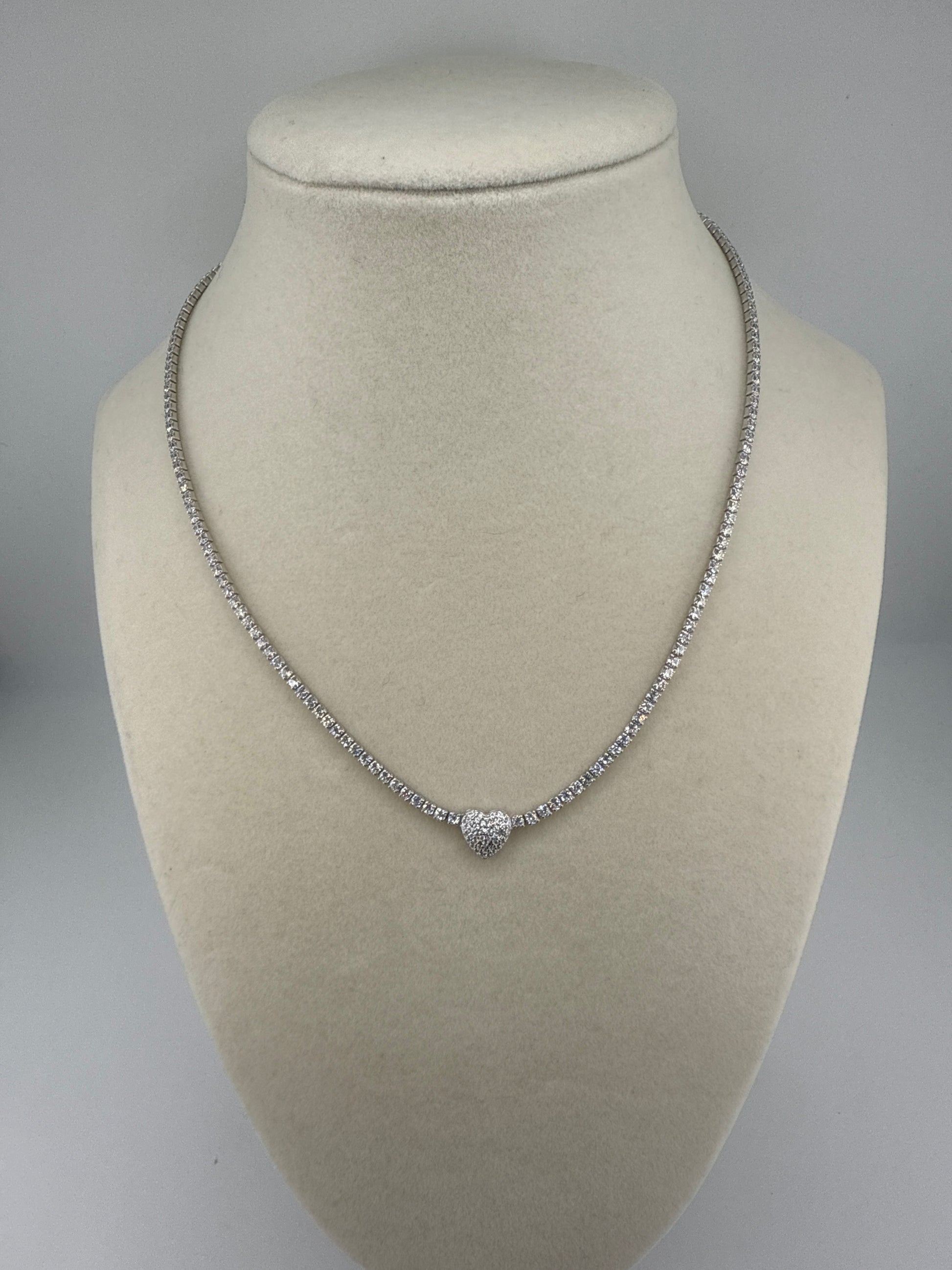 Sterling Silver, Heart Zirconia Tennis Necklace
