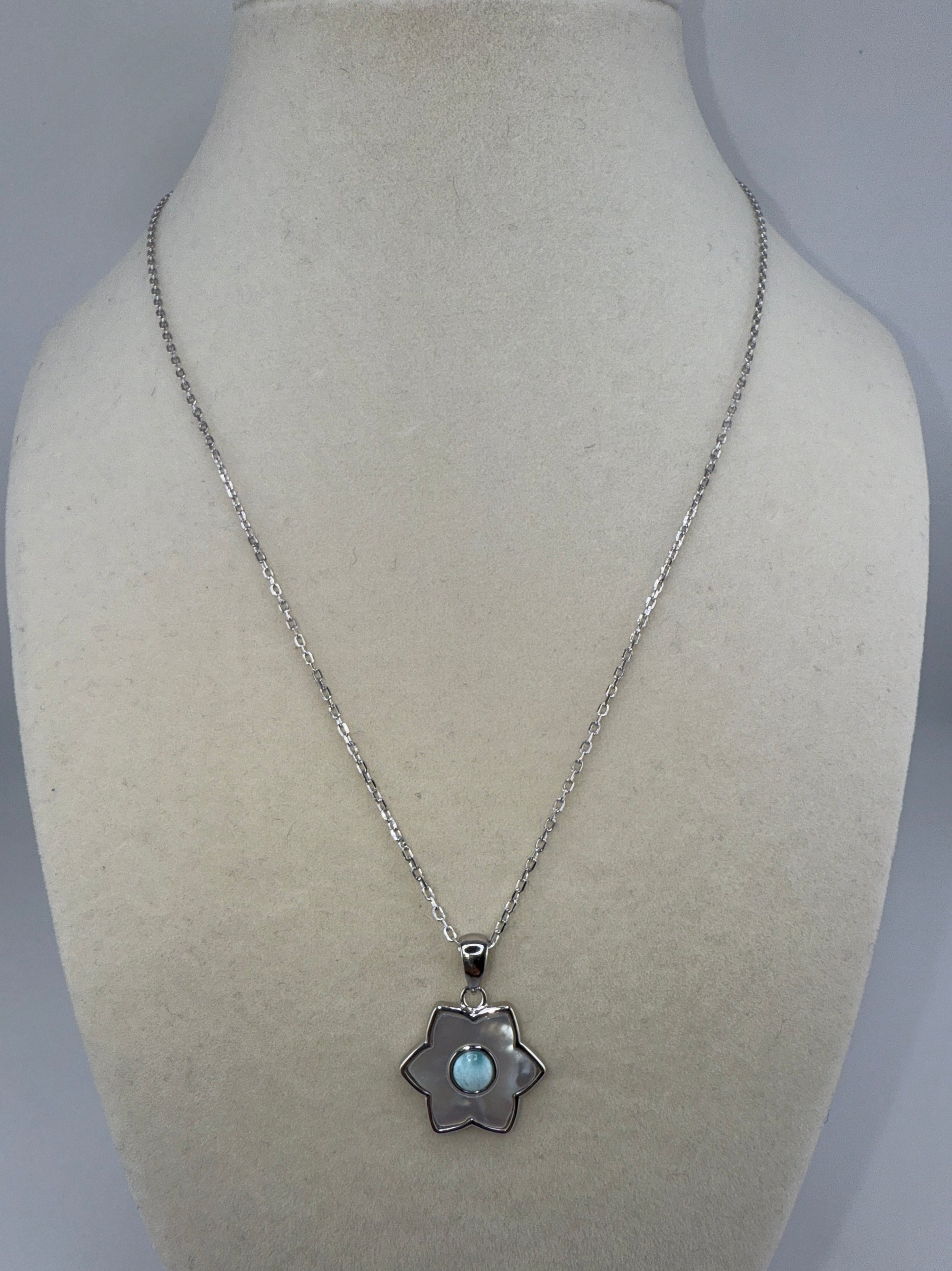 Sterling Silver Larimar & MOP Flower Necklace