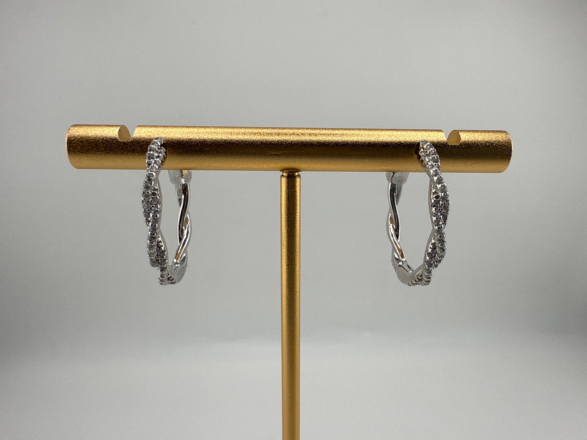 Sterling Silver Twisted Zirconia Hoop Earrings