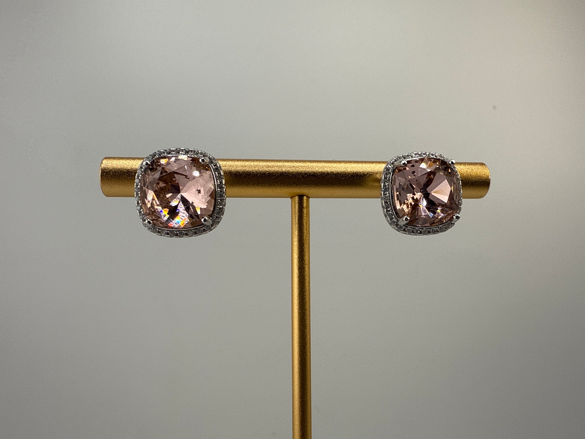 Sterling Silver Zirconia and 10mm Cushion Square Vintage Rose Swarovski Element Earrings