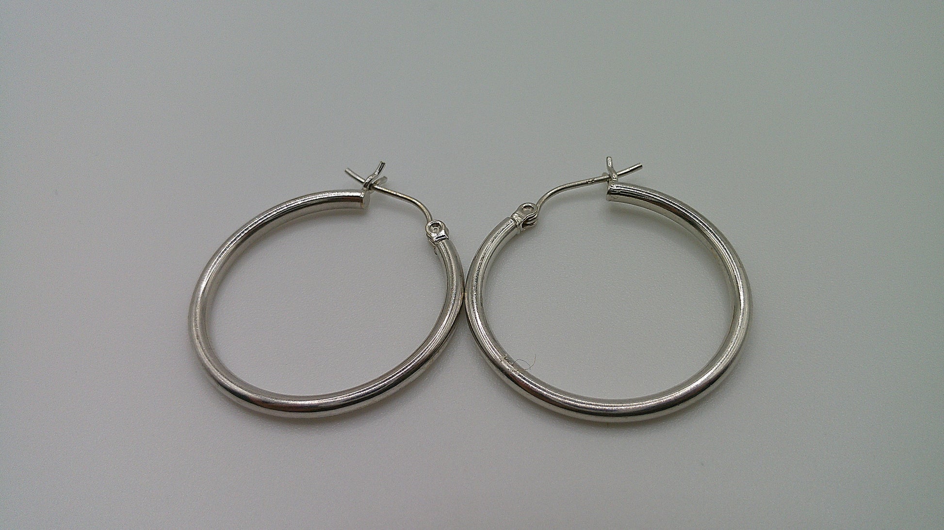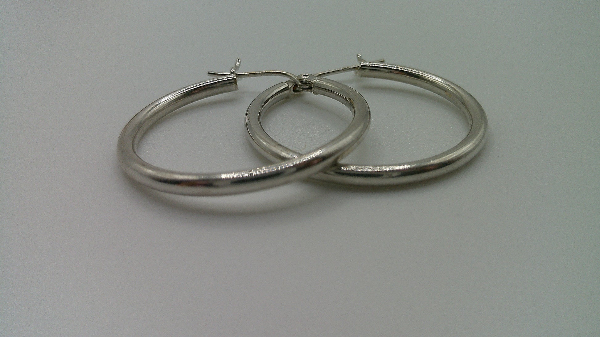 14k white gold | Lightweight classic hoop earring | 1.5mm | 1 inch wide
